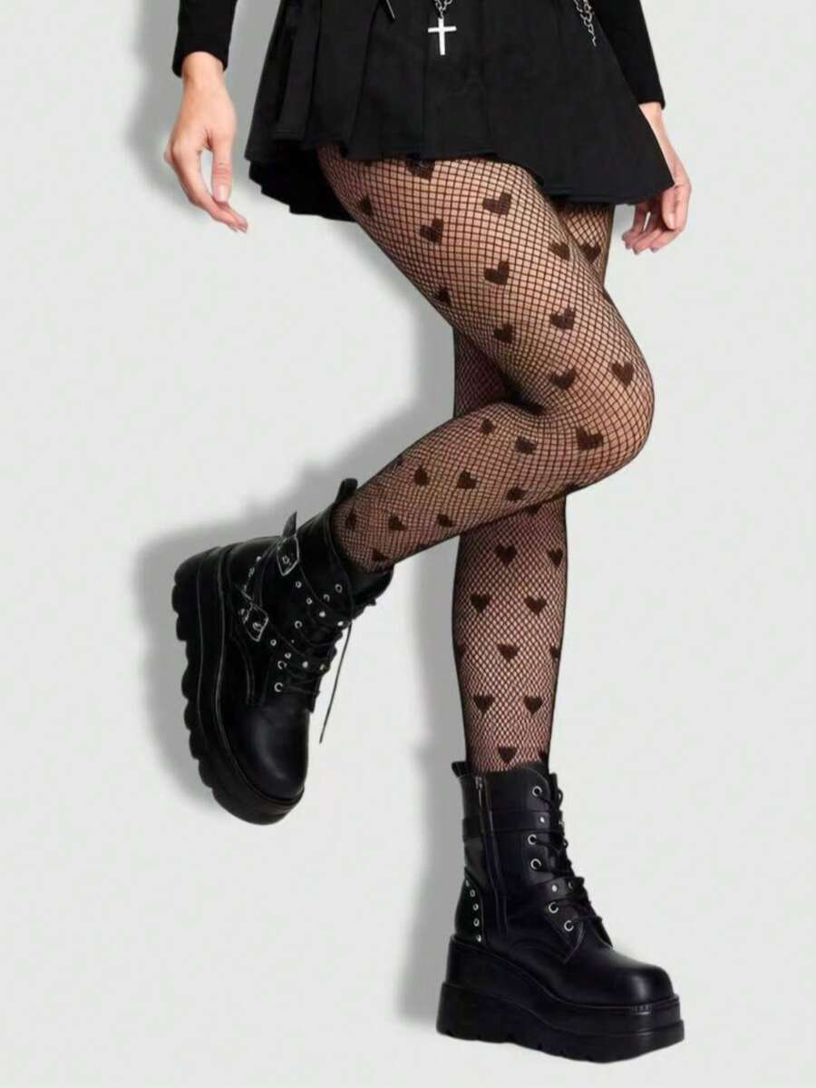 Kawaii Pantimedia de red elástica con forma de corazón, adecuada para combinar con faldas