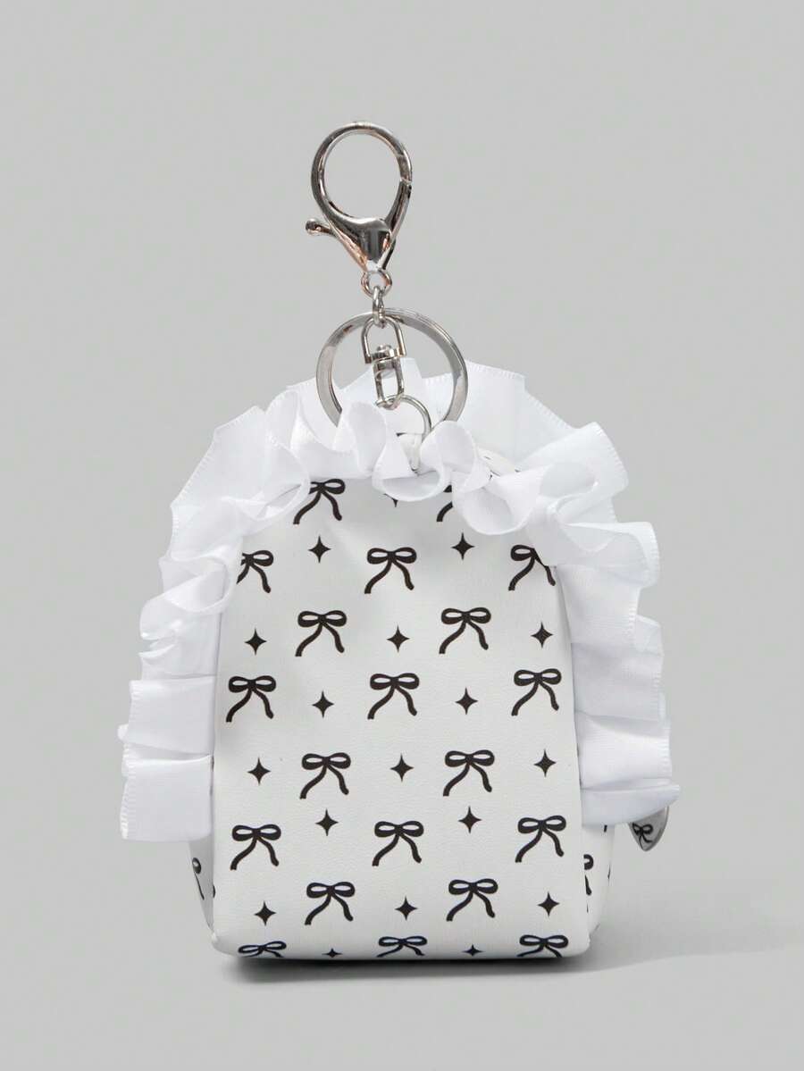 Kawaii Monedero portátil con estampado de lazo y flores de gran capacidad y color negro