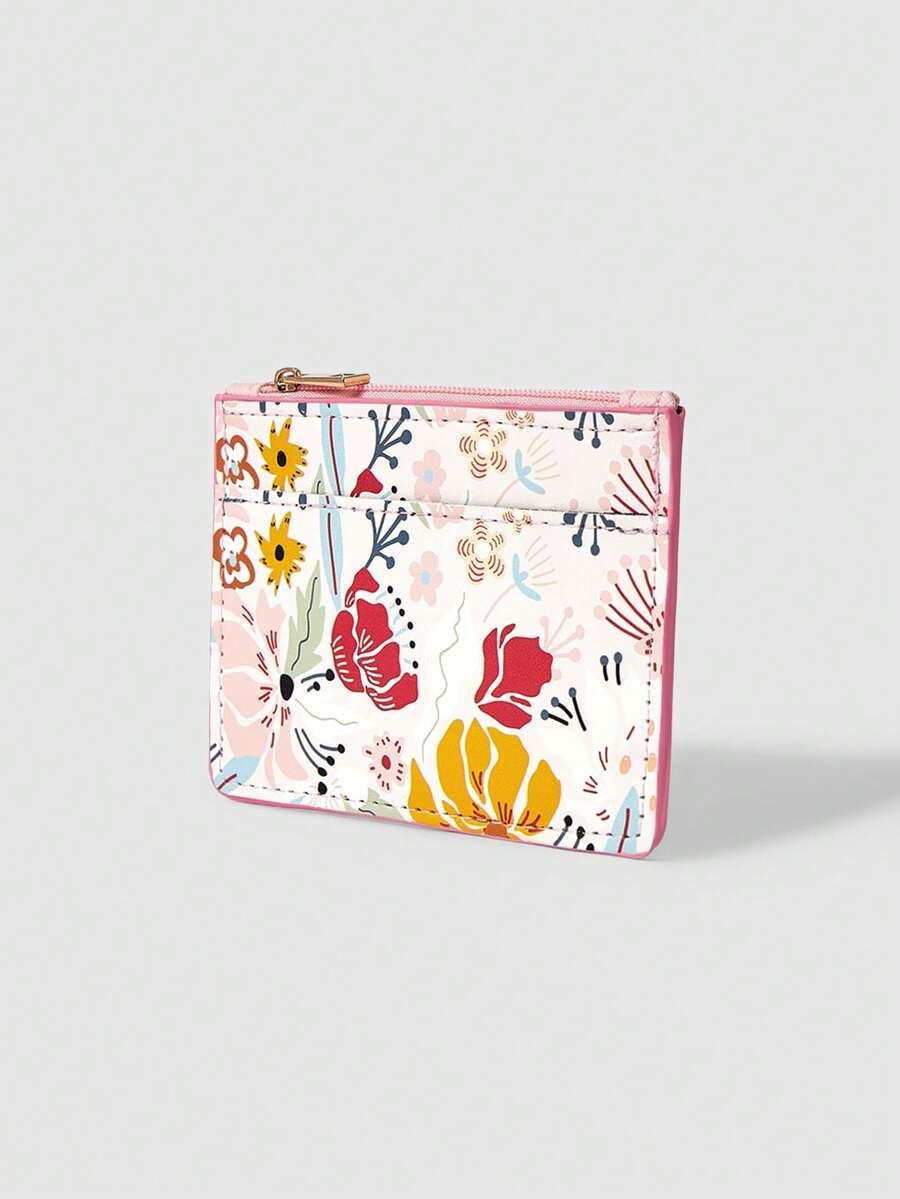 Kawaii Bolsa de tarjetas compacta y linda con flores de color rosa claro