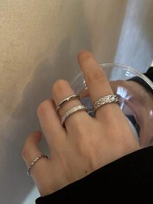 Kawaii Conjunto De Anillos Circulares Minimalistas Para Mujer, Conjunto De Combinación De Anillos De Dedo Populares Estilo Ins