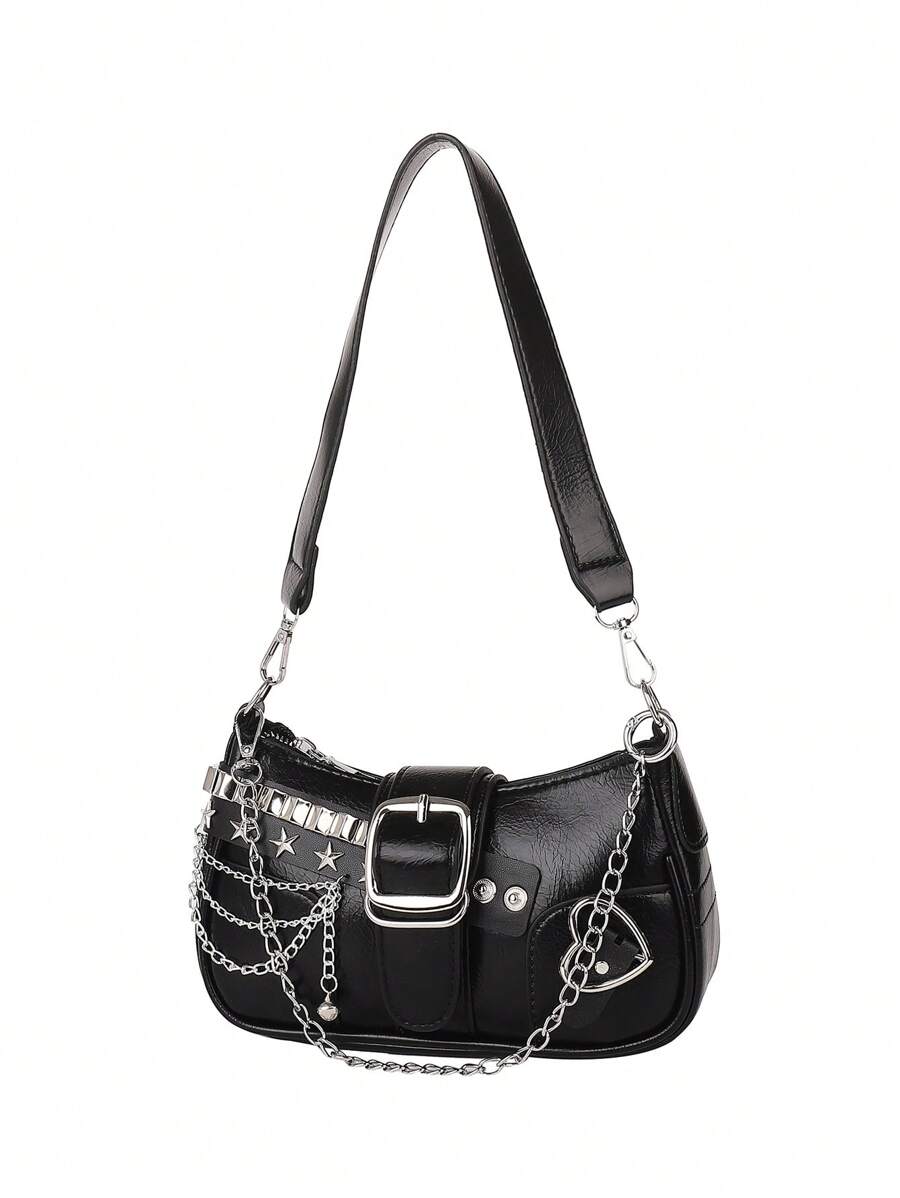 Kawaii Nuevo bolso bandolera de mujer con decoración de cadena, estilo punk rock, bolso de hombro, lindo color oscuro femenino