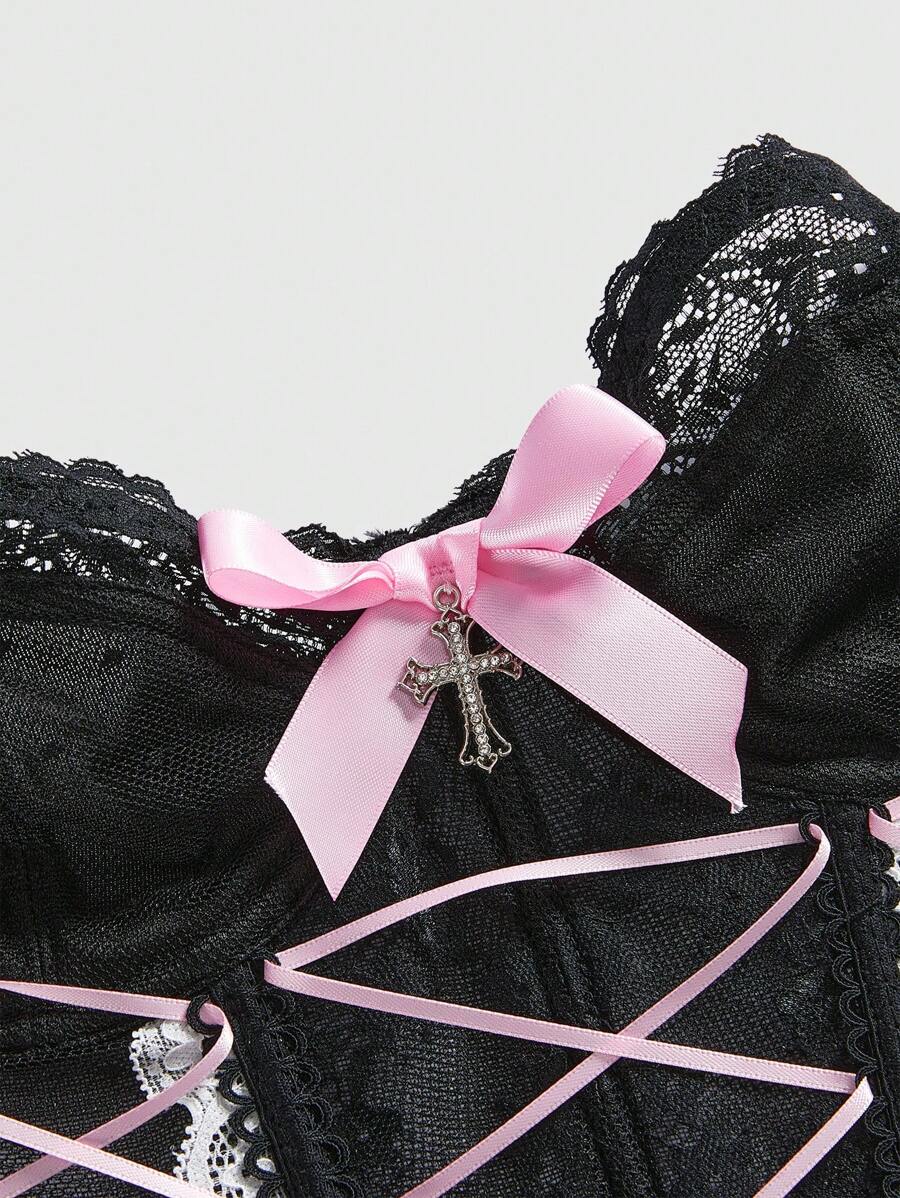 Kawaii Top de tirantes con lazo, estilo punk, cruzados y con encaje para mujeres