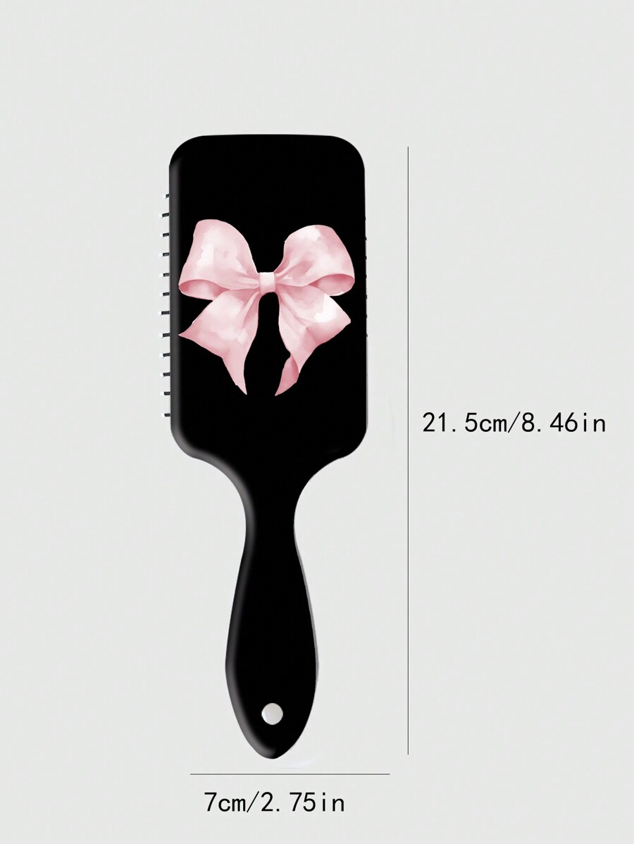 Kawaii Cepillo de cabello con cojín y estampado de lazo rosa, cepillo profesional de peluquería para peinar y masajear el cabello
