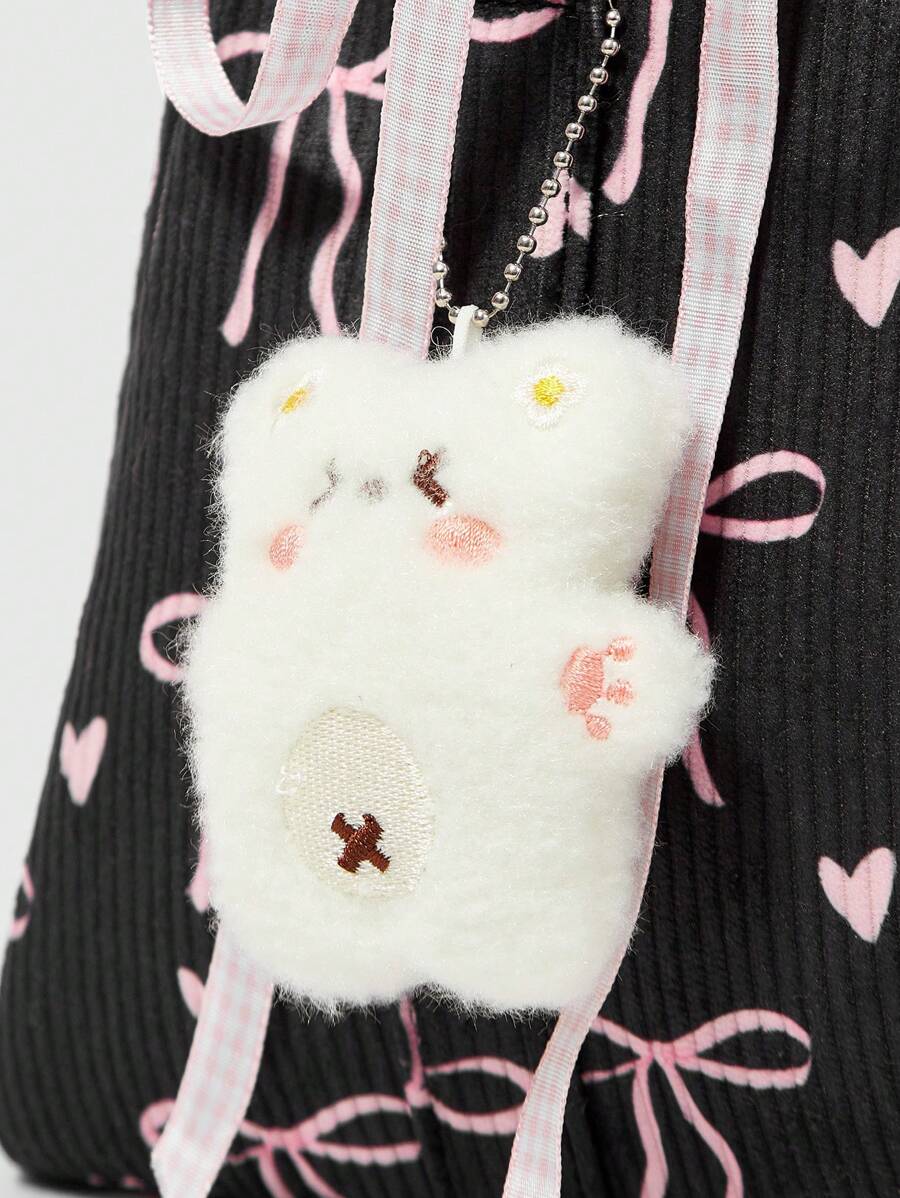 Kawaii Bolso de mano de mujer de color rosa con estampado de corazón y decoración de lazo de pana fashionable y portátil