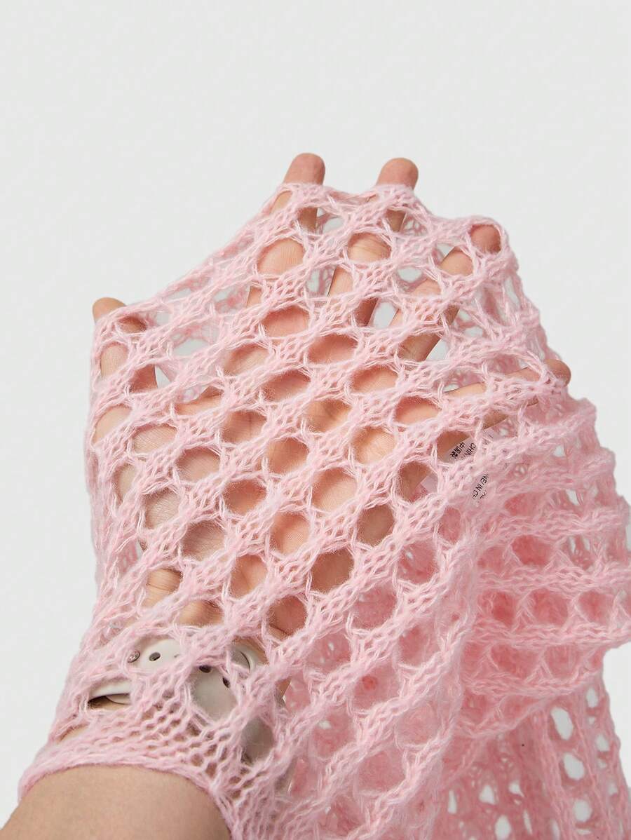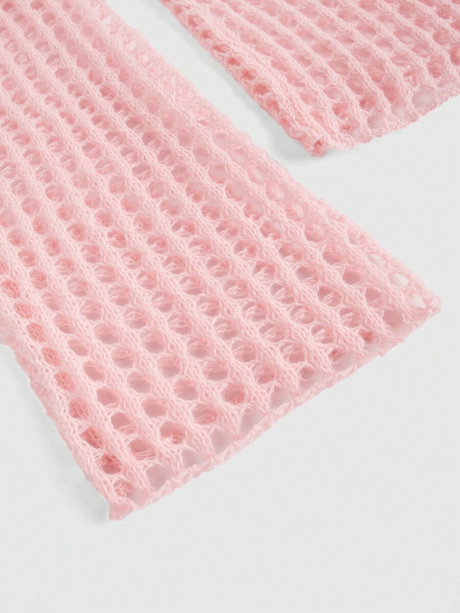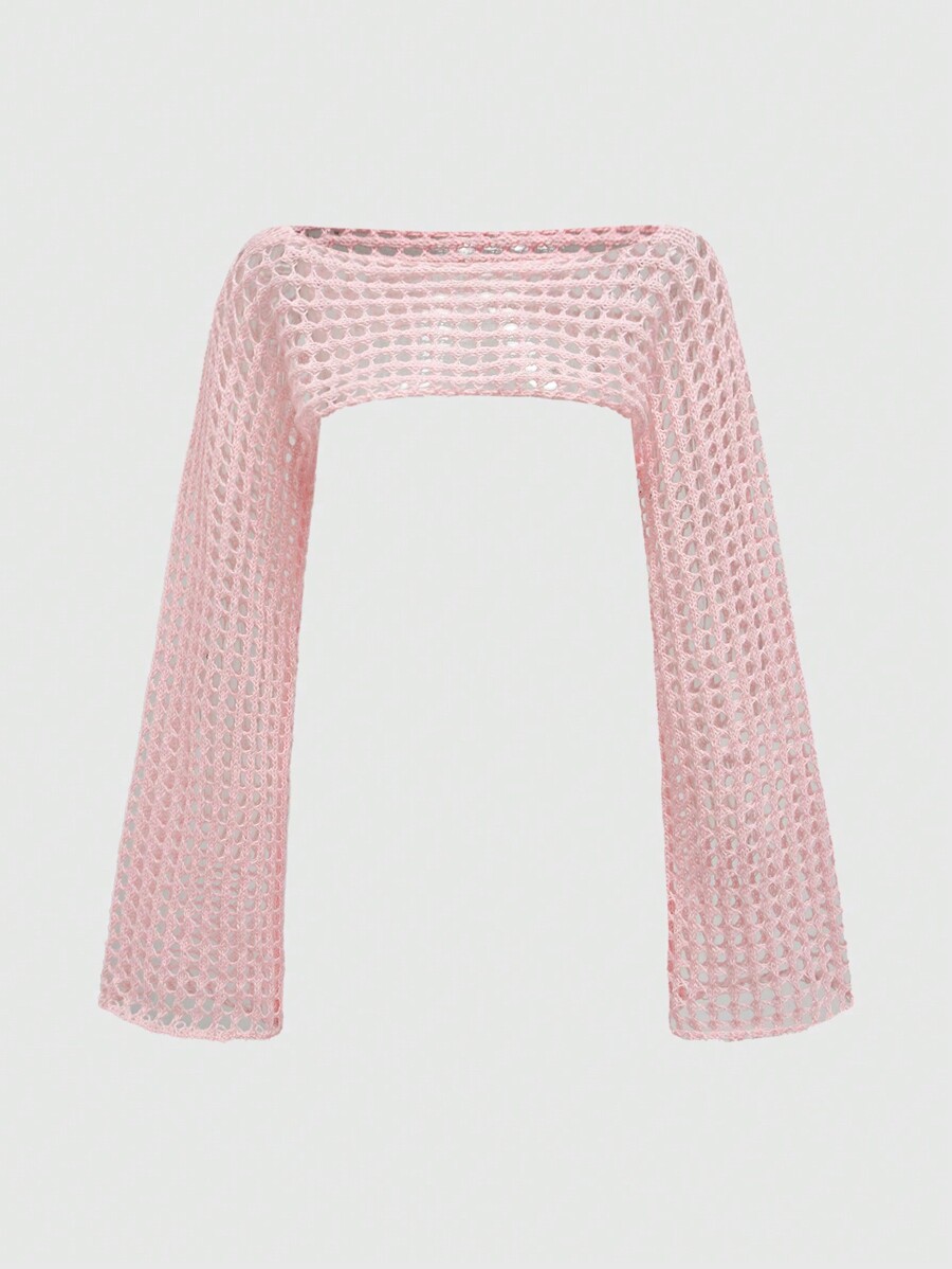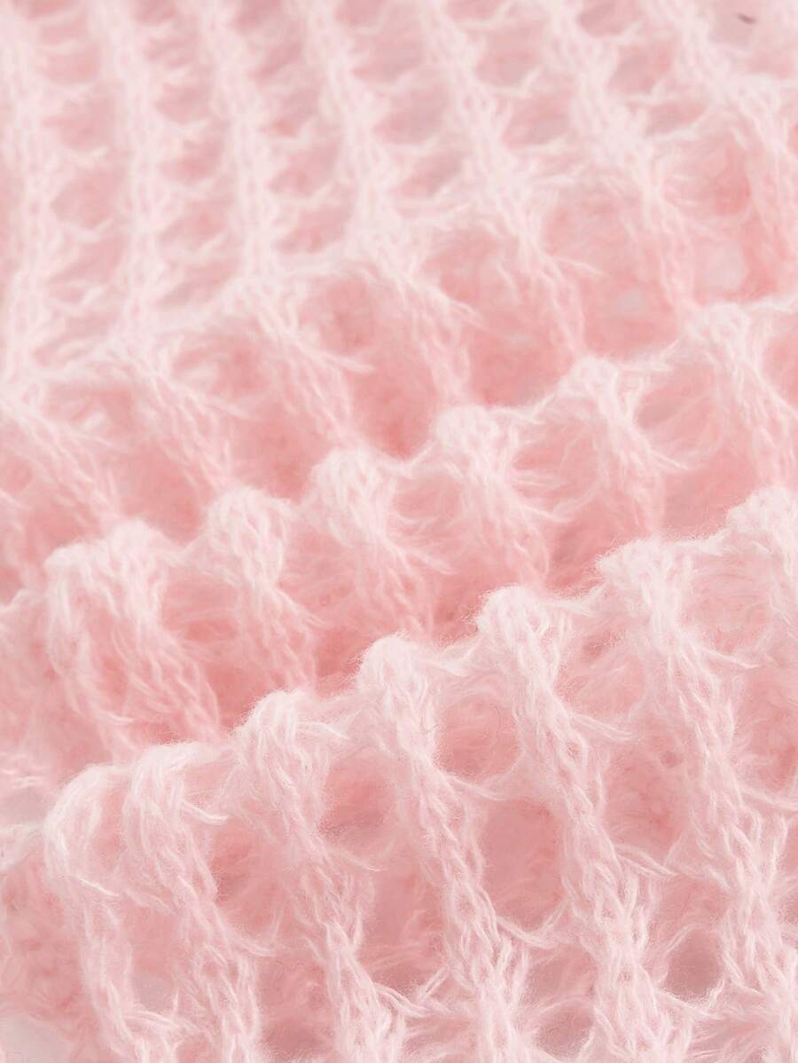 Kawaii Sudadera rosa de punto de ganchillo con hombros descubiertos y corte ultra corto