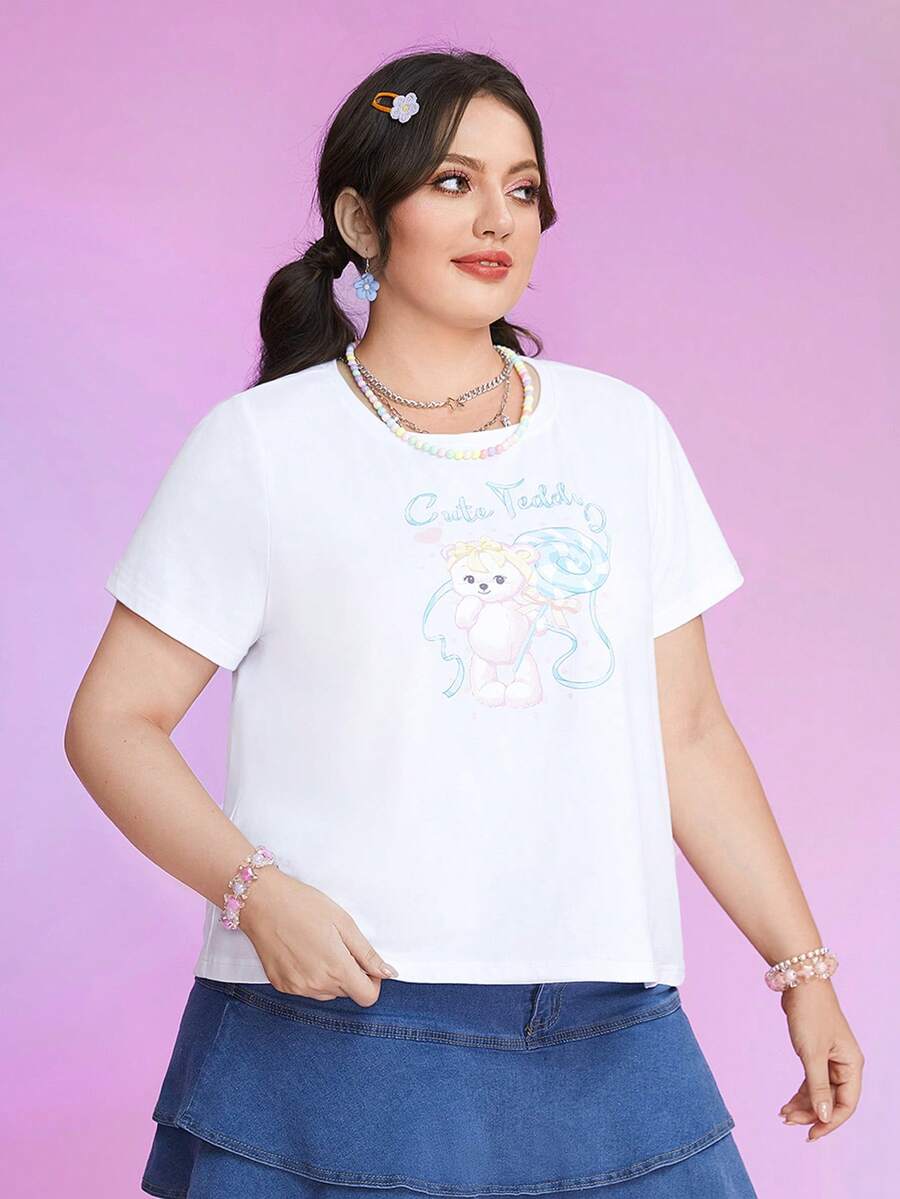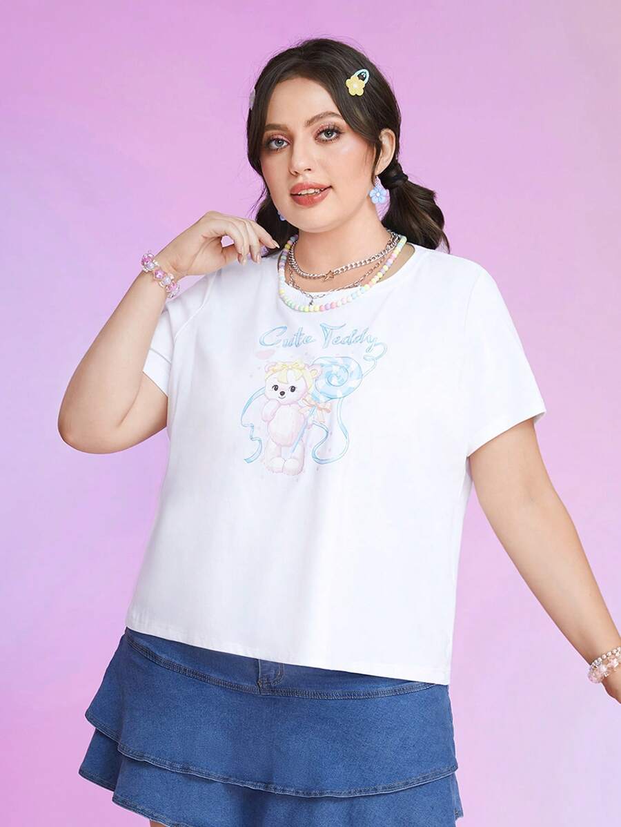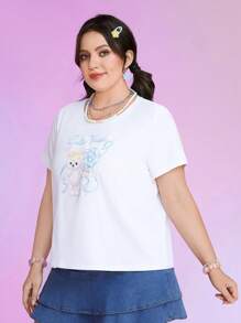 Kawaii Talla grande Camiseta con estampado de dibujos animados