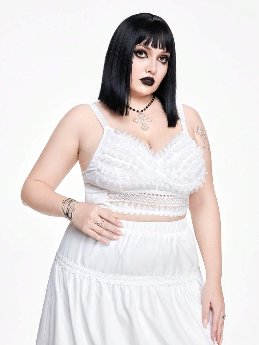 Kawaii Camiseta de tirantes con encaje y aros sin aros para tallas grandes