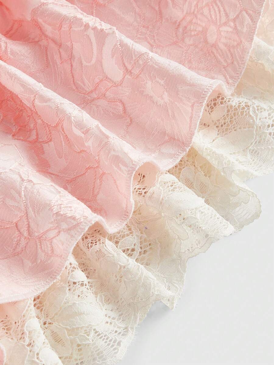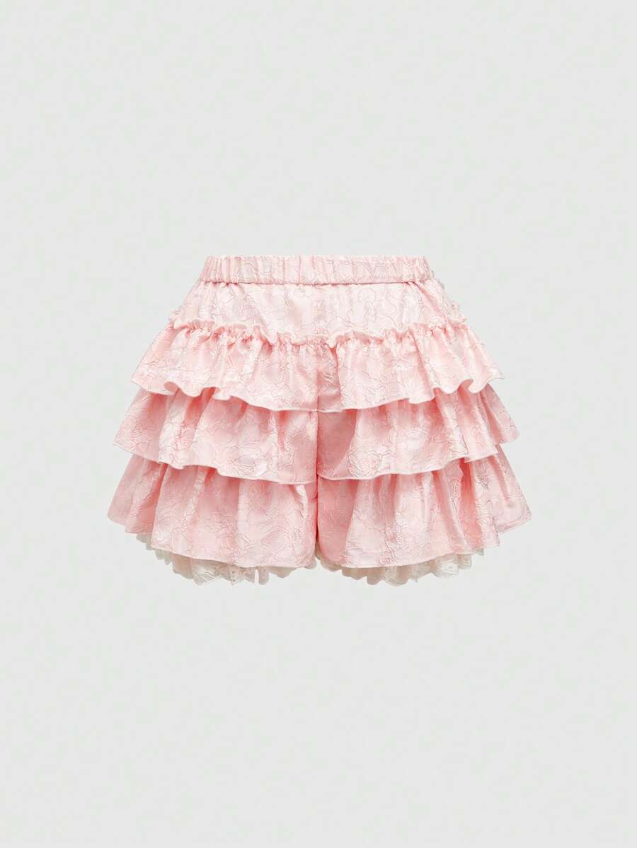 Kawaii Short de mujer talla grande con textura de satén retro romántico, remiendo y colgante de perla