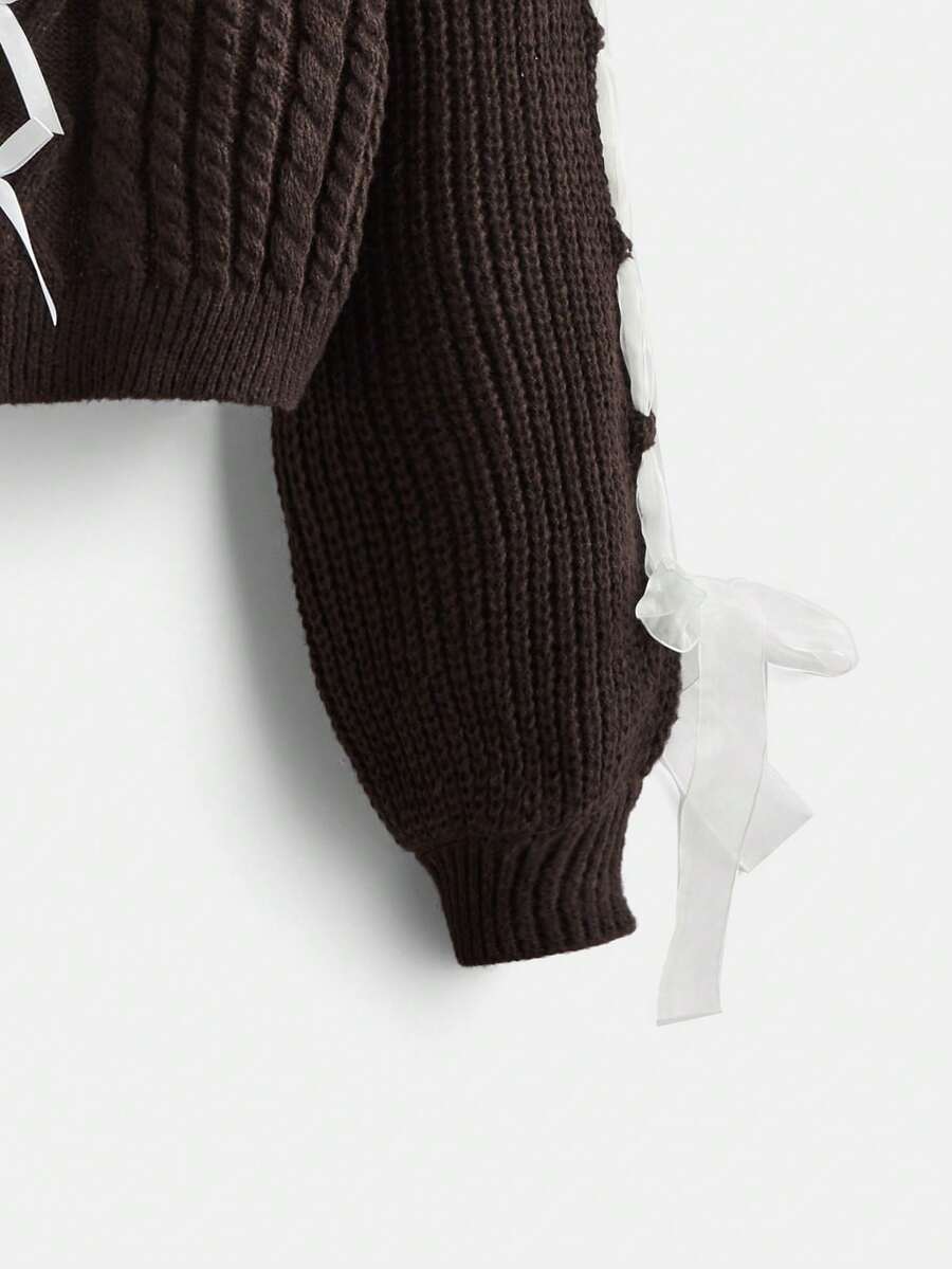 Kawaii Suéter De Hombro Frío Y Talla Grande Para Mujeres Con Decoración De Lazo