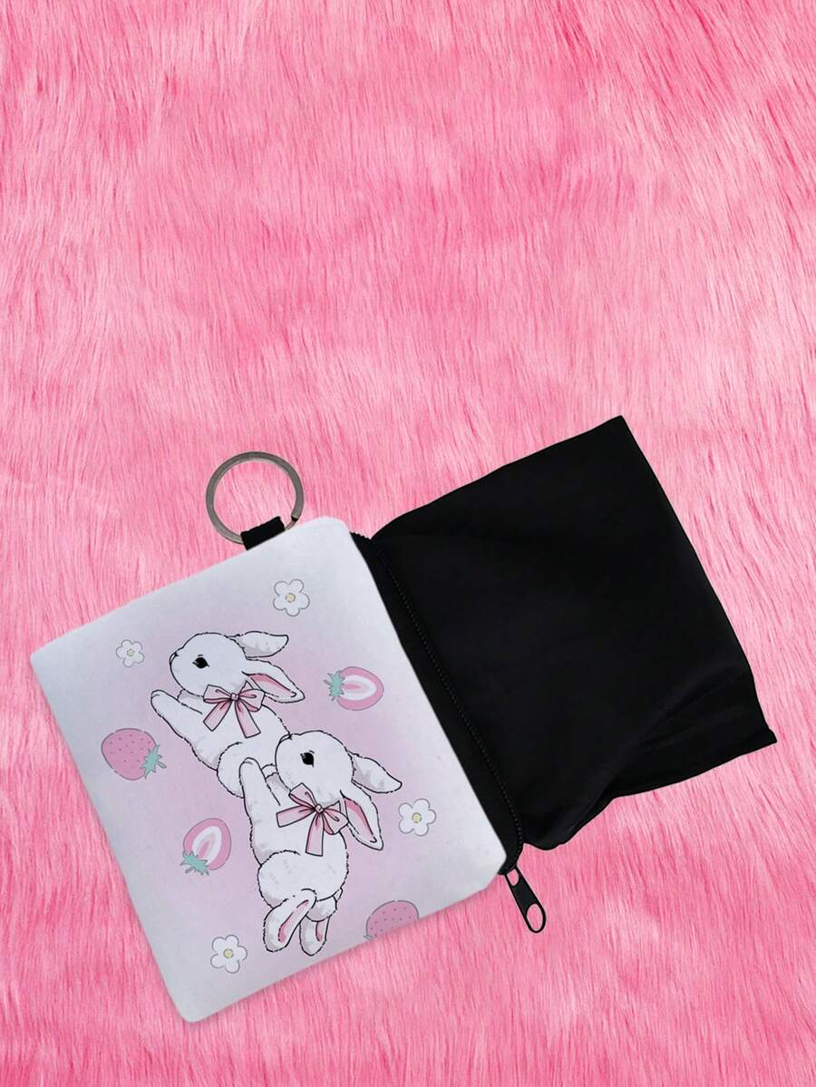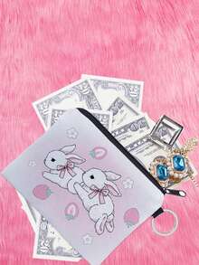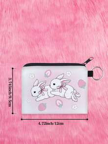 Kawaii Monedero preppy con estampado de conejo de dibujos animados