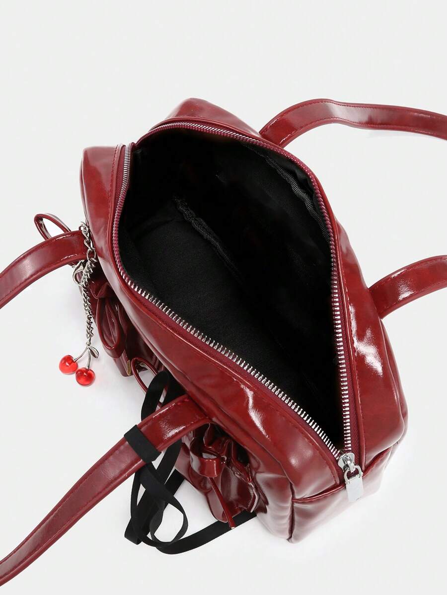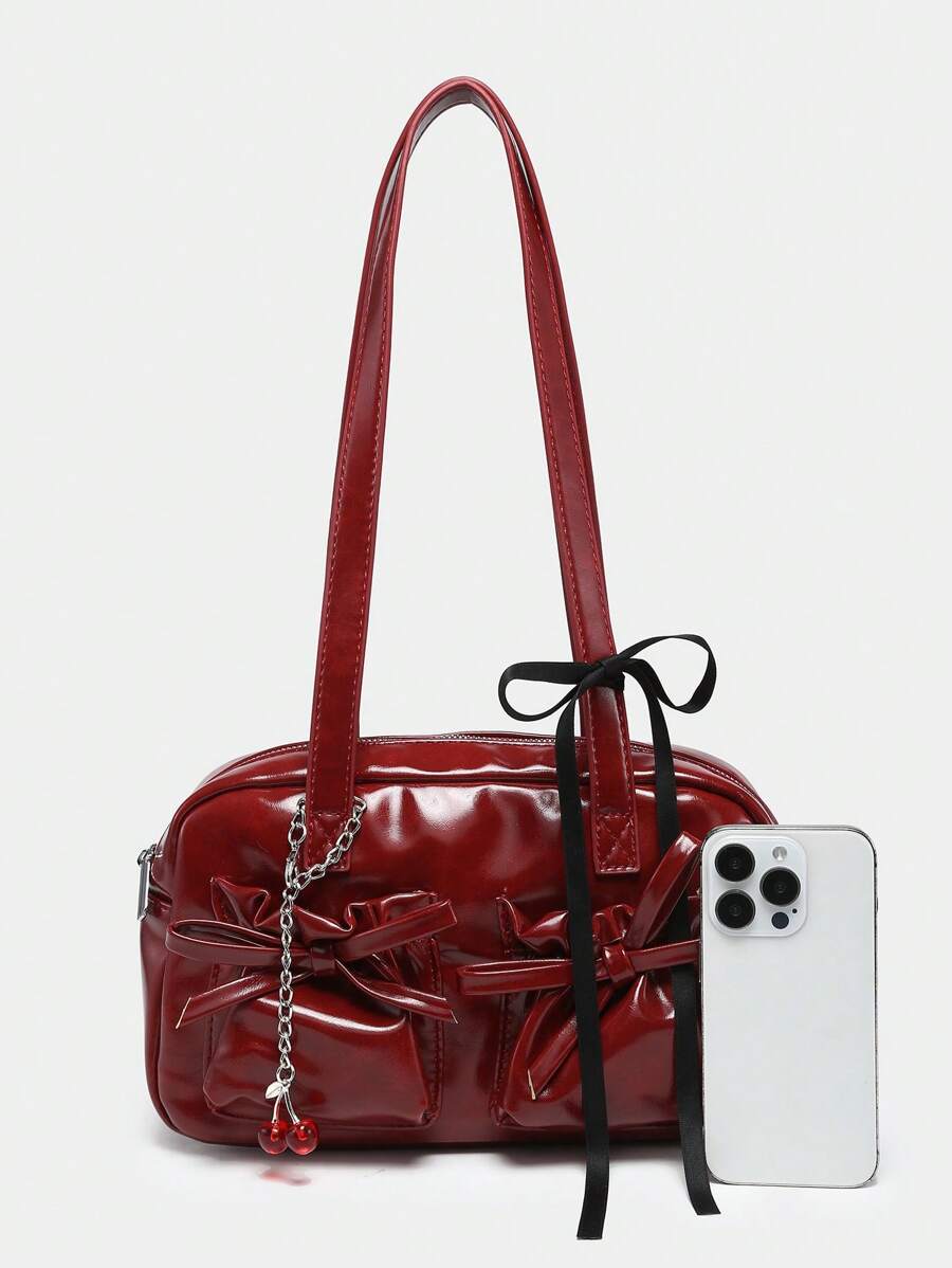Kawaii Bolso de hombro/bandolera con múltiples bolsillos, de estilo Boston, con lazo a cuadros retro, corazón decorativo y estilo cruzado para mujer
