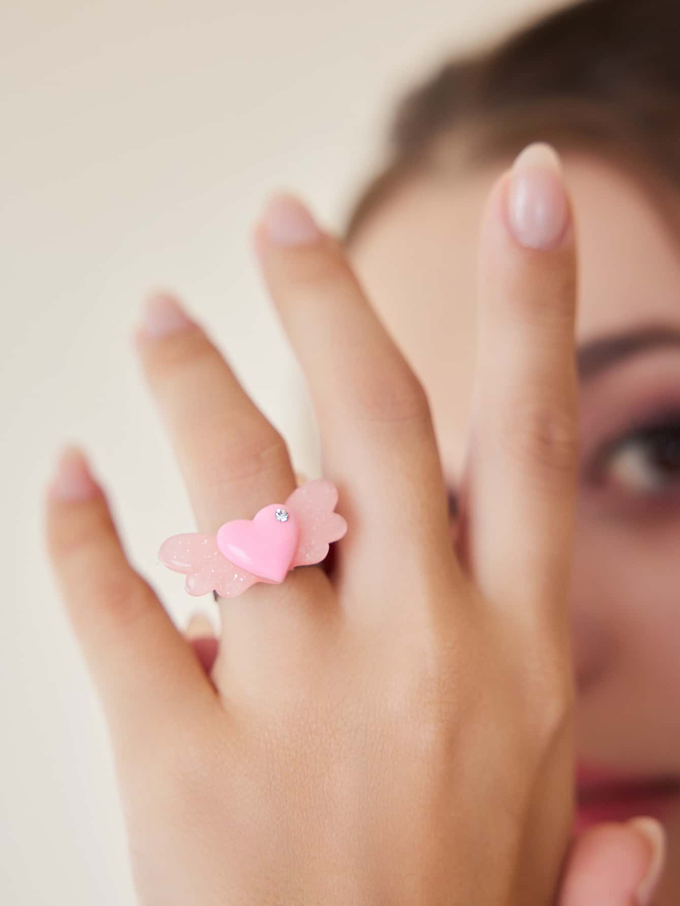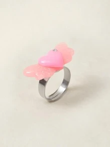 Kawaii Anillo con diamante de imitación & con adorno de corazón