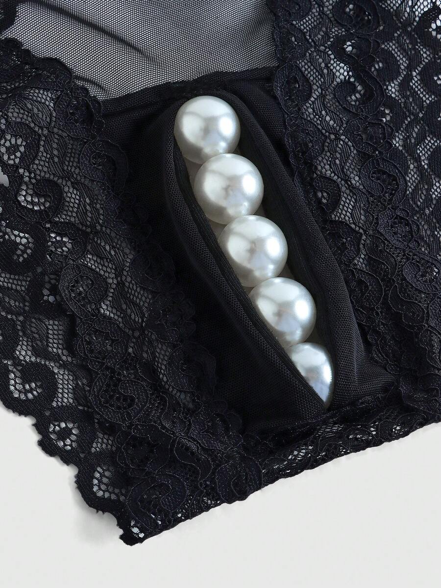 Kawaii Pantis sexy transparentes de mujer con perlas y diseño calado