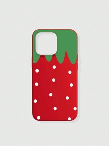 Kawaii Funda de teléfono roja con pintura de fresas de lunares blancos simples para serie IPhone12/13/14