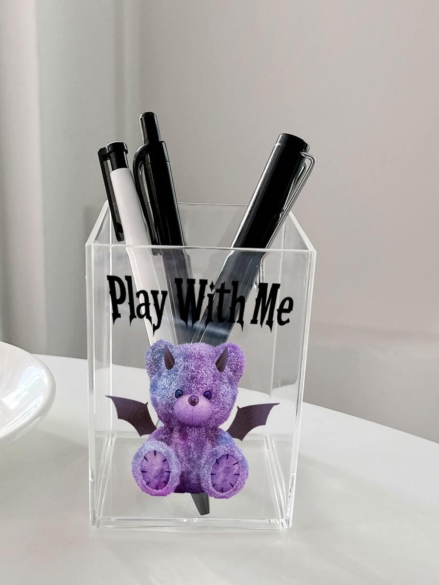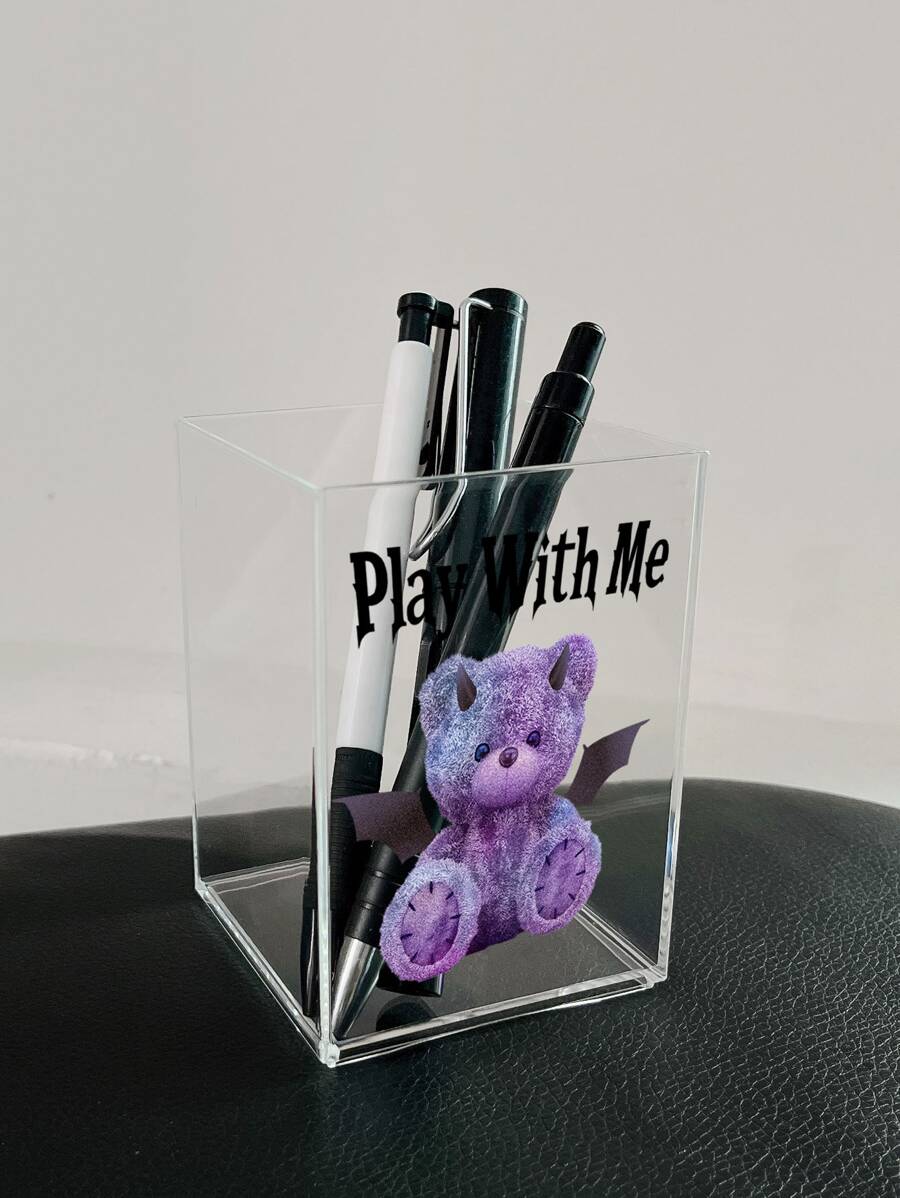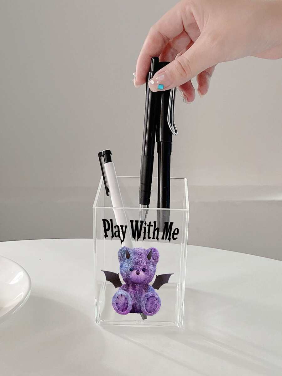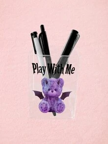 Kawaii Bote para lápices con estampado de slogan & de oso