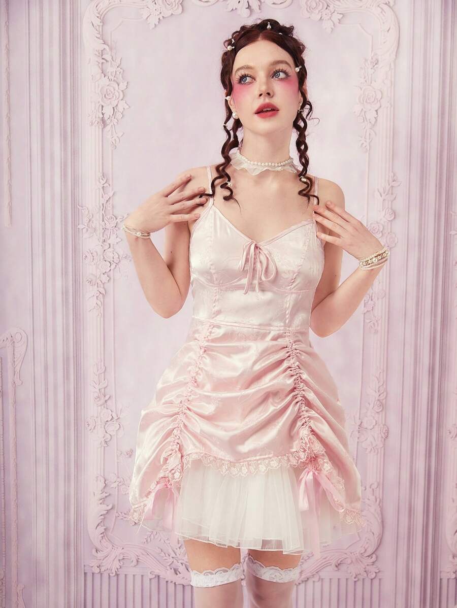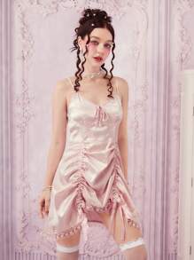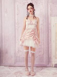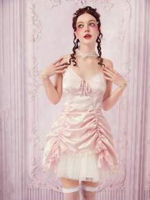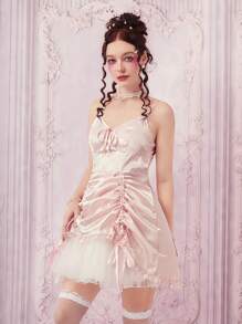 Kawaii Vestido de tirantes unicolor con cordón fruncido