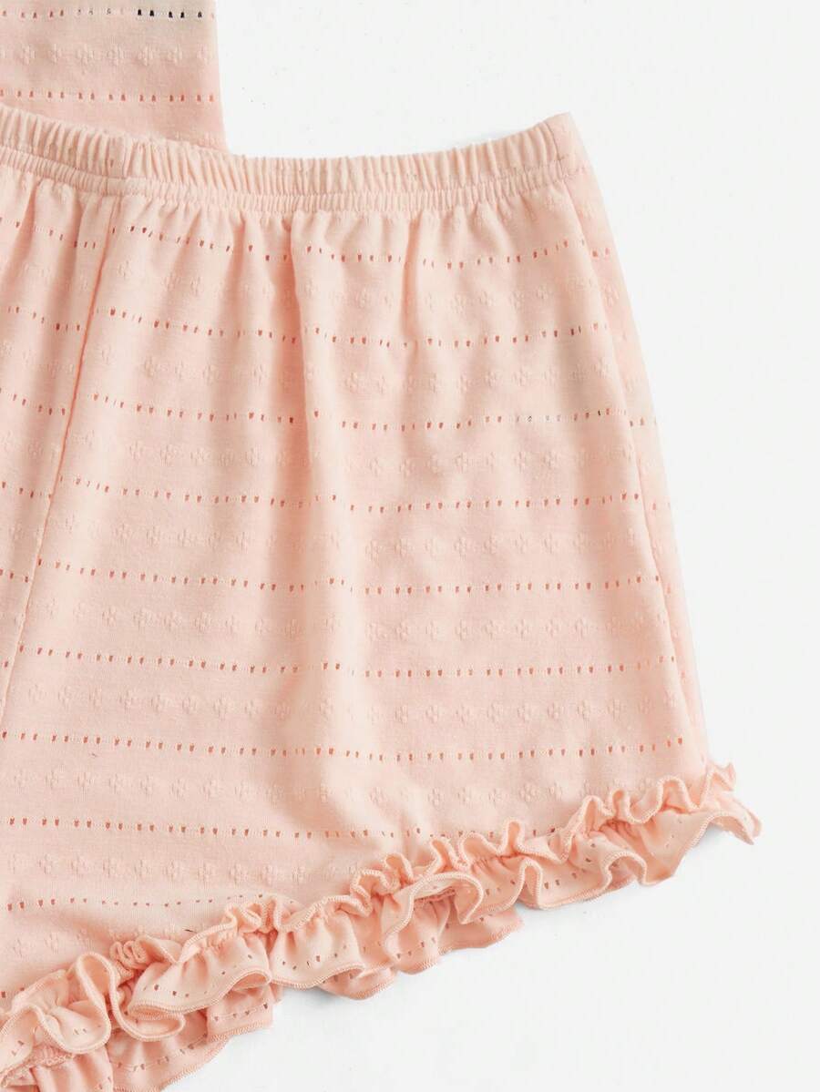 Kawaii Conjunto De Pijama De Cami Y Pantalones Cortos Sólidos Con Ribete De Volantes