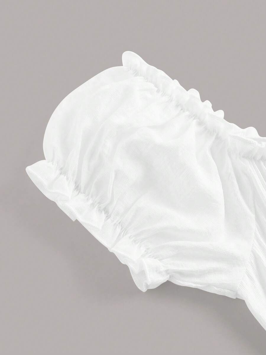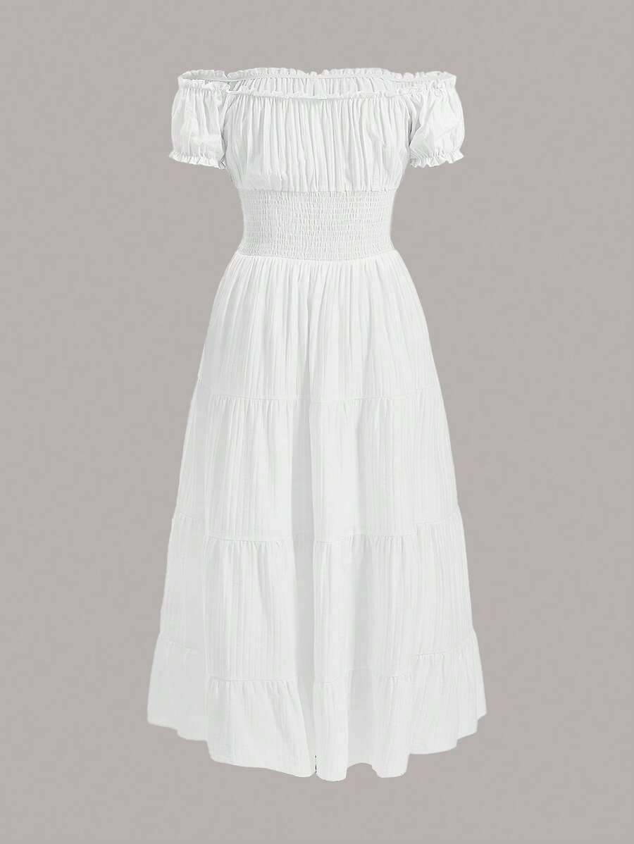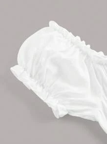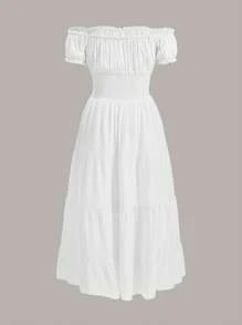 Kawaii Vestido unicolor de hombros descubiertos bajo con fruncido