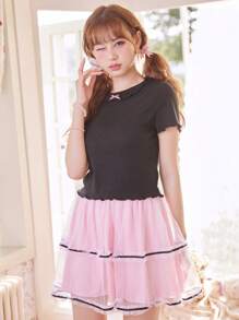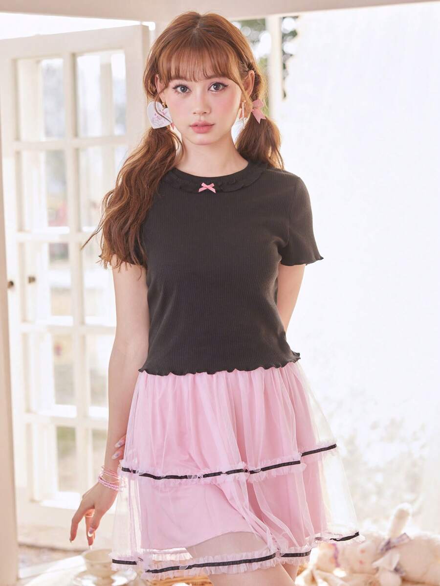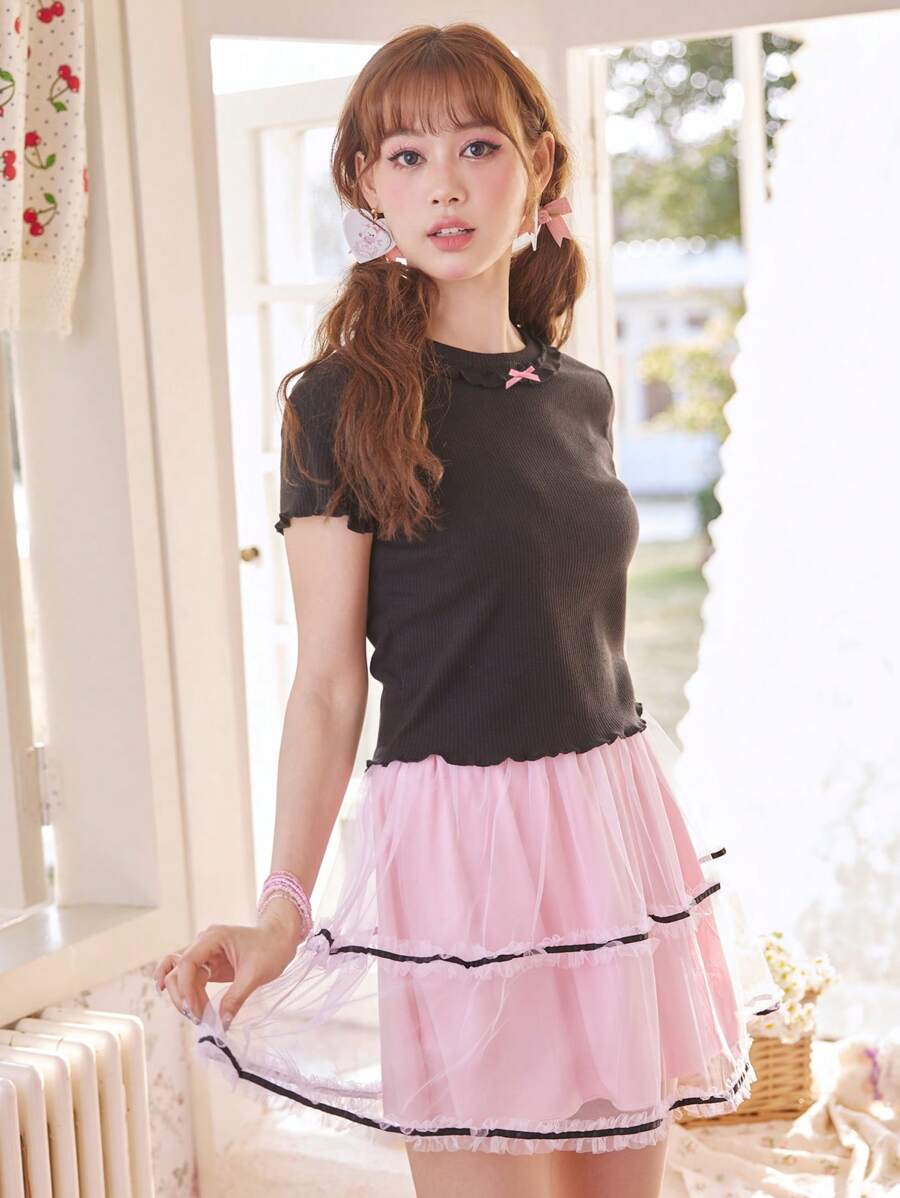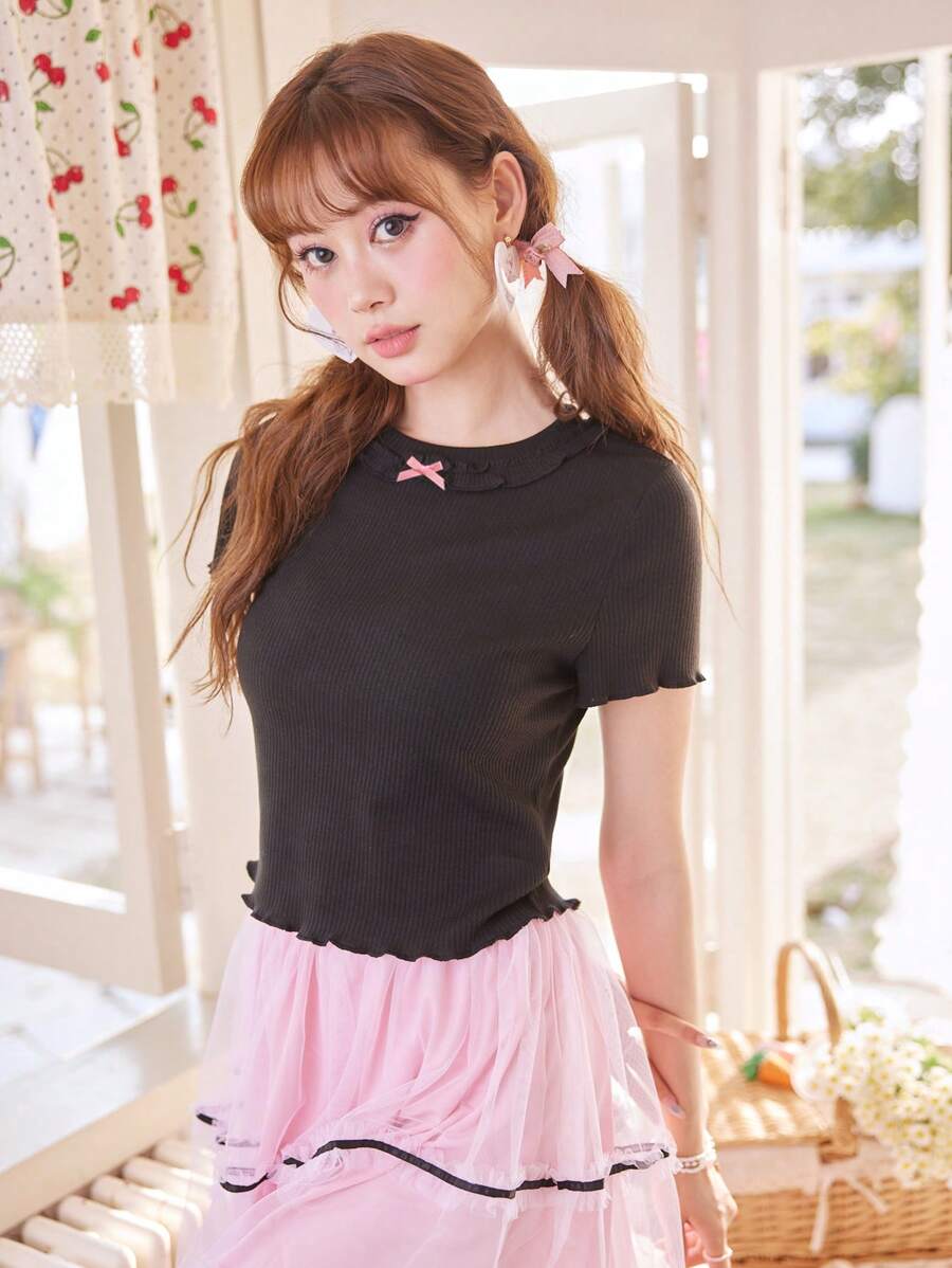 Kawaii Camisetas de Mujer Volante fruncido Acaracolado Canalé Liso Casual