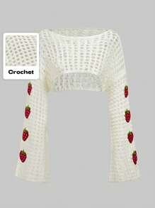 Kawaii Jersey de punto con diseño de fresa calado y hueco para damas de verano, escuela