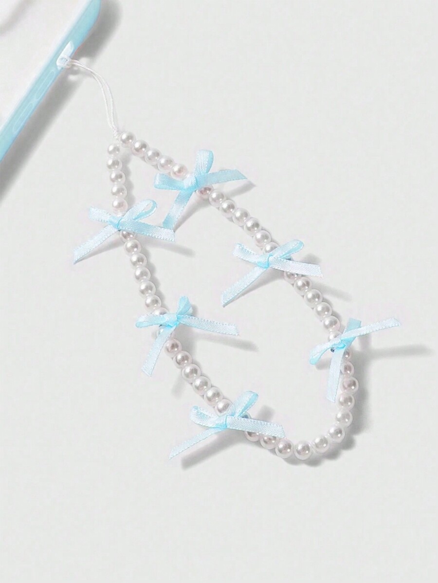 Kawaii Funda de teléfono con colgante de lazo 3D y borde azul para niña, funda de teléfono sencilla compatible con las series iPhone 12, 13, 14 y otros modelos de teléfono