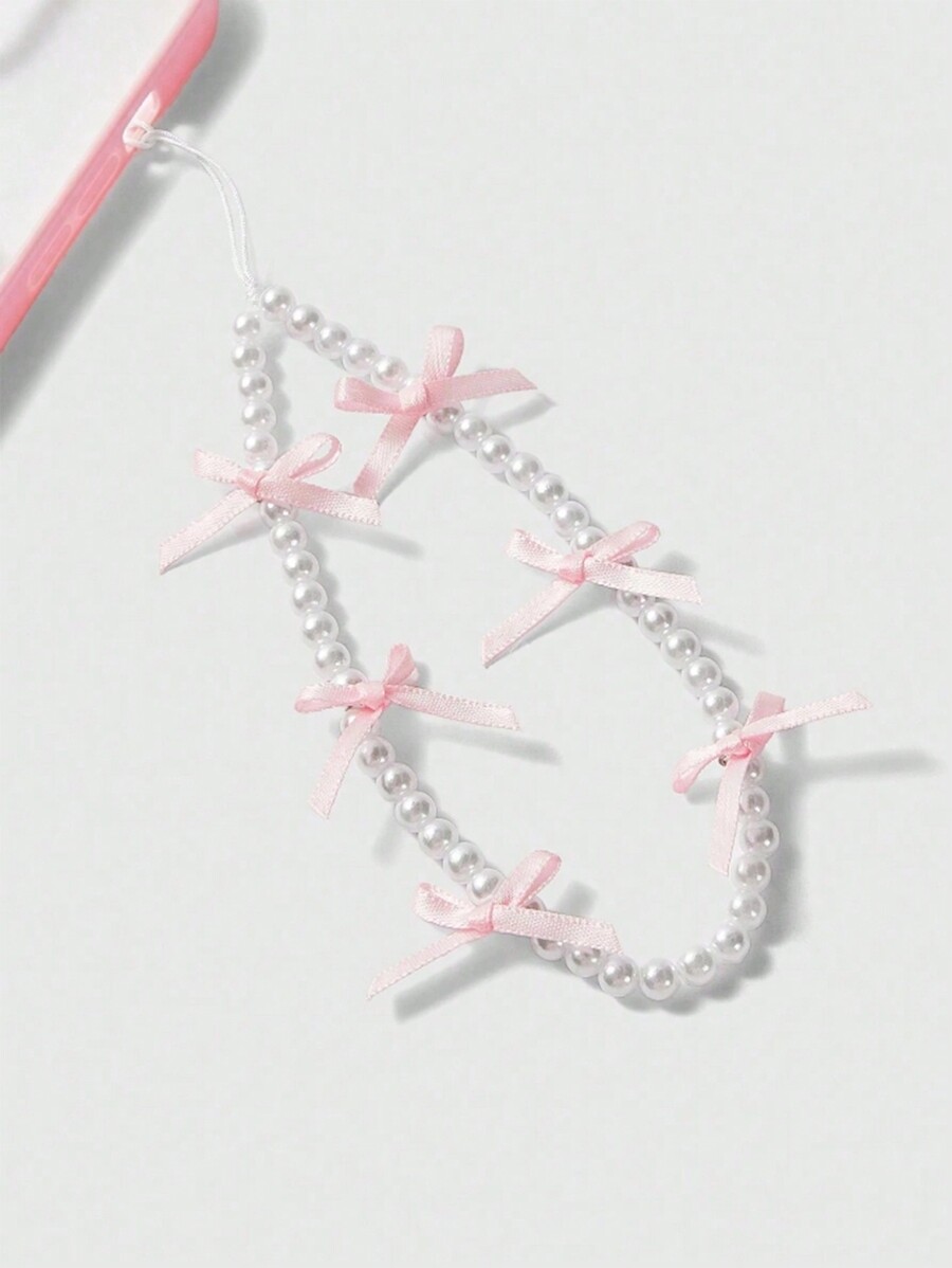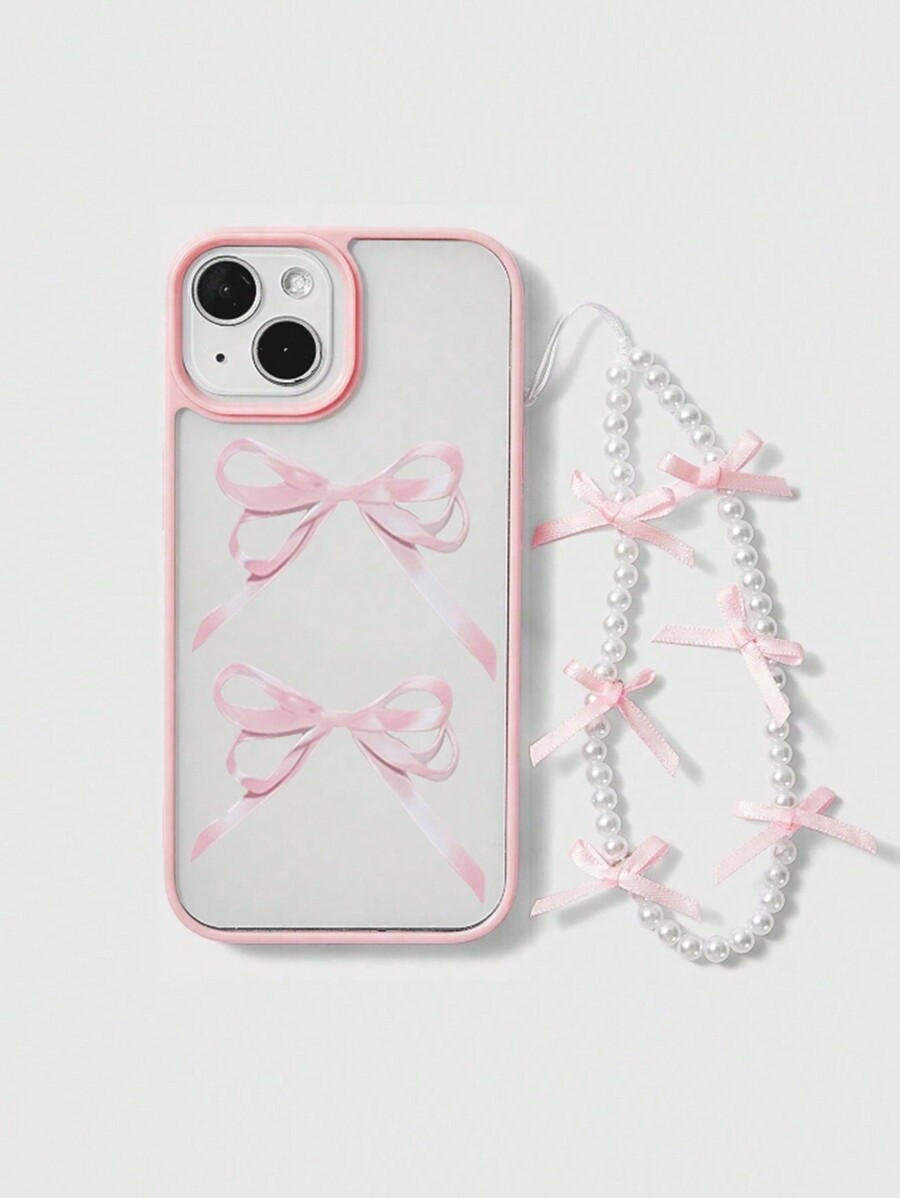 Kawaii Collar de perlas dulce para niña con moño de cinta y lindo colgante de mariposa, funda de teléfono con marco rosa compatible con la serie de iPhone 12 13 14 y otros modelos