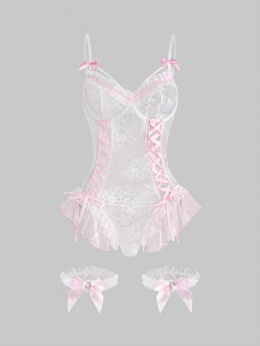 Kawaii Mono sexy con lazo de estilo muñeca, inocente y lindo, con cordones para el Día de San Valentín