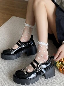 Kawaii Mujer con adorno de corazón punta redonda plataforma Zapatos mary jane , preppy exterior plataforma Zapatos