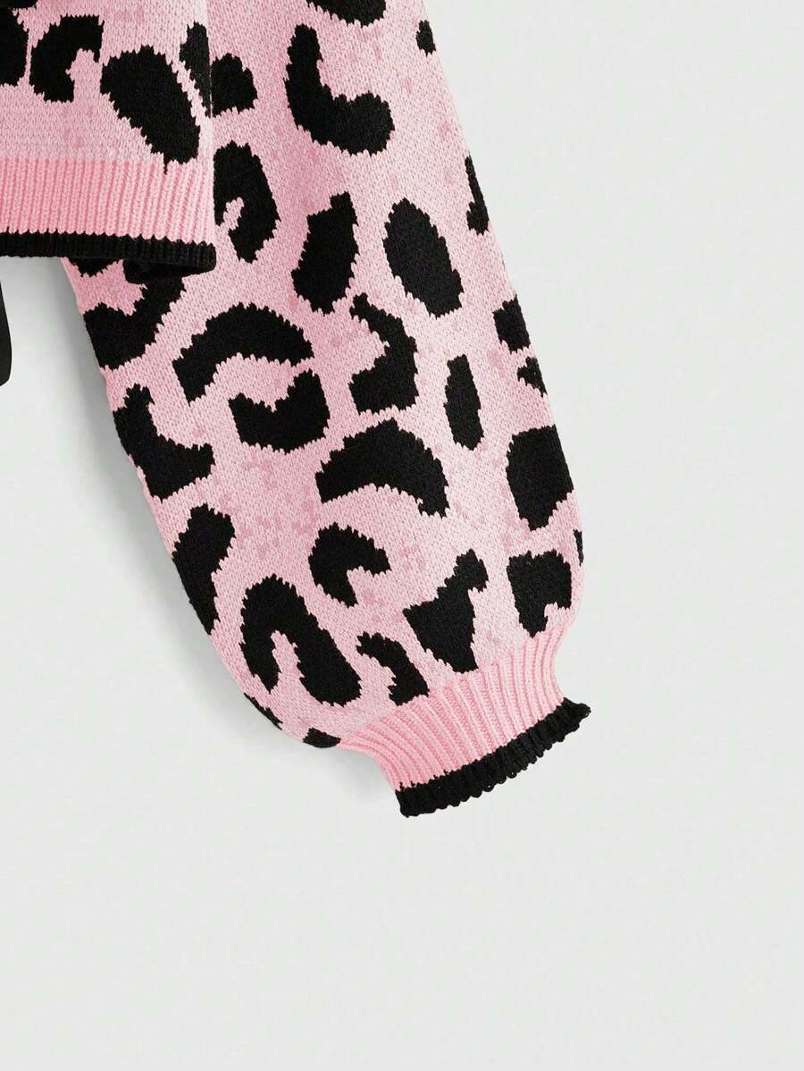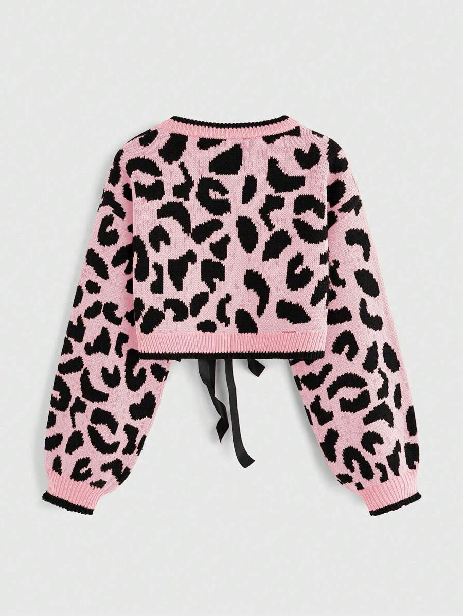 Kawaii Blusa casual de manga larga con estampado de leopardo y cierre de lazo adelante, para uso diario
