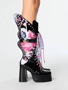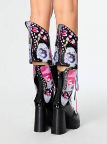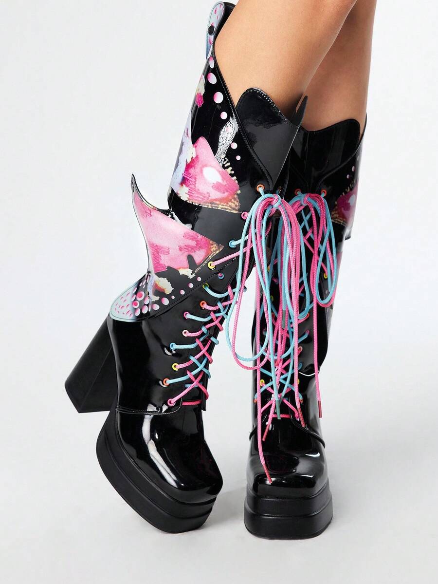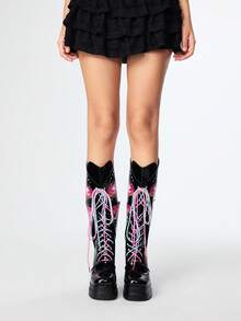 Kawaii Botas de media caña con suela gruesa, estilo punk con cordones para mujer, de moda para uso diario