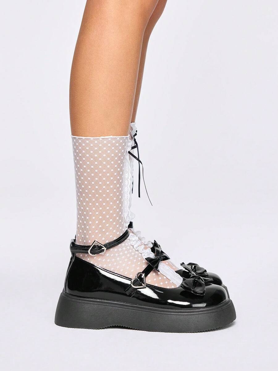 Kawaii Zapatos de plataforma con cuña de estilo gótico punk rock Y2K con correa, cadena y remaches, de estilo Mary Jane negros para mujer, para Halloween