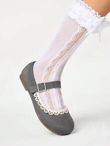 Kawaii Mocasines marrones para mujer, zapatos Mary Jane de punta cerrada, bailarinas Lolita con lazo y encaje