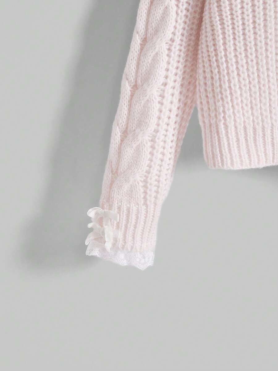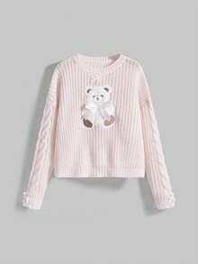 Kawaii Suéter de mujer con bordado de oso lindo, parche de encaje y lazo