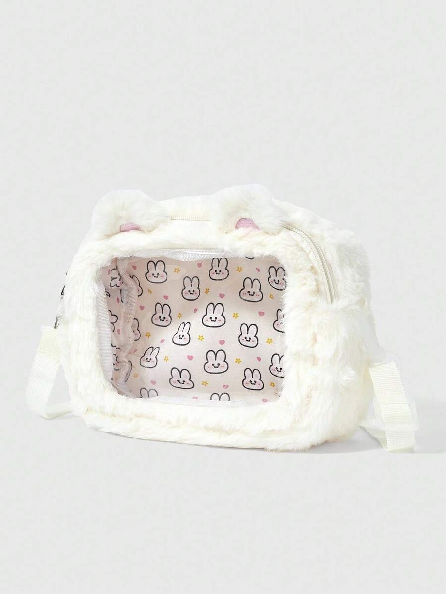 Kawaii Bolso de mujer versátil de moda con hombro y bandolera, con bordado y estampado de conejo de peluche