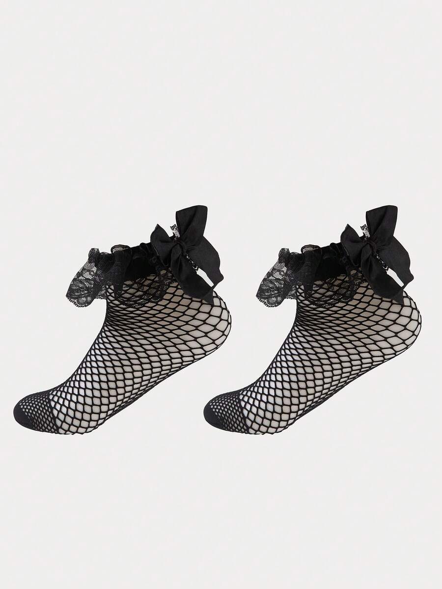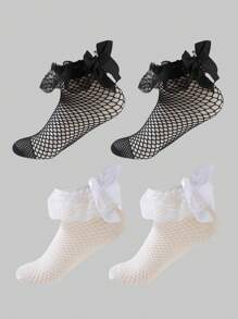 Kawaii Calcetines a media pantorrilla con lazo decorativo para mujeres