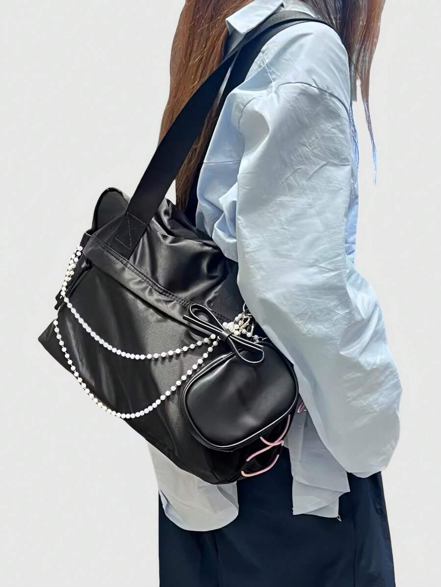 Kawaii Bolso de mano urbano minimalista de moda para mujer, bolsa casual de uso múltiple para ir al trabajo con gran capacidad, bolsa para teléfono a juego con cadena de perlas