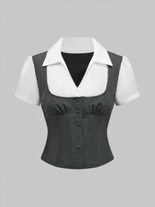 Kawaii Camisa estilo colegial gris de 2 en 1 para mujer, vuelta al colegio