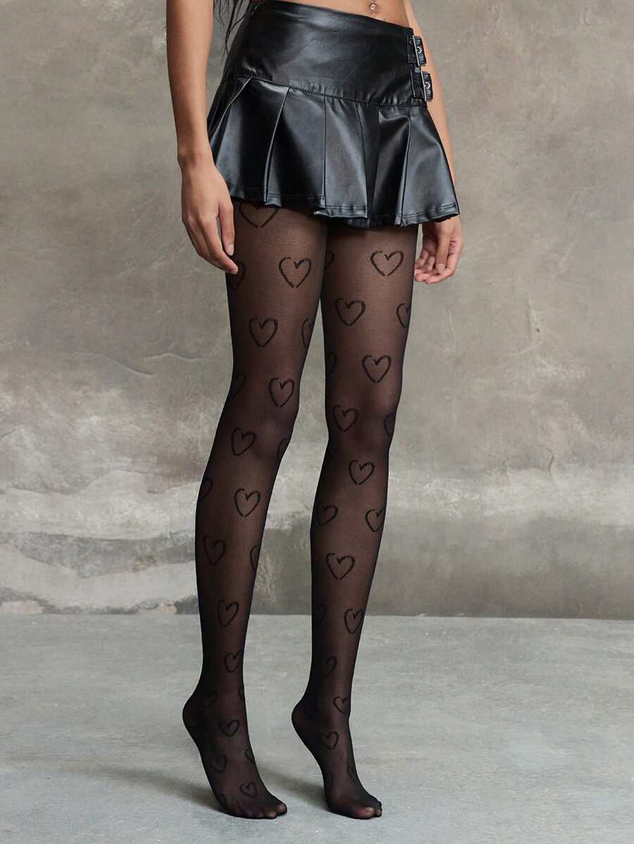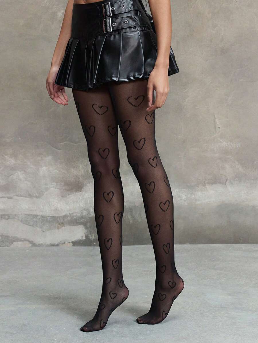 Kawaii Medias/Pantimedias/Leggings con estampado de corazones para mujer, aptos para combinar con faldas cortas