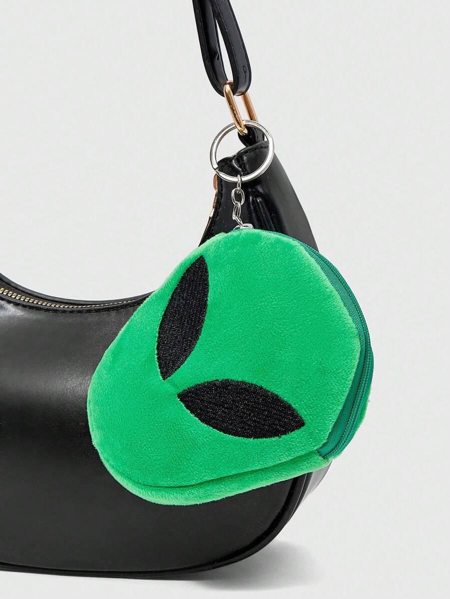 Kawaii Monedero portátil de mujer con bordado retro de forma de alien de peluche