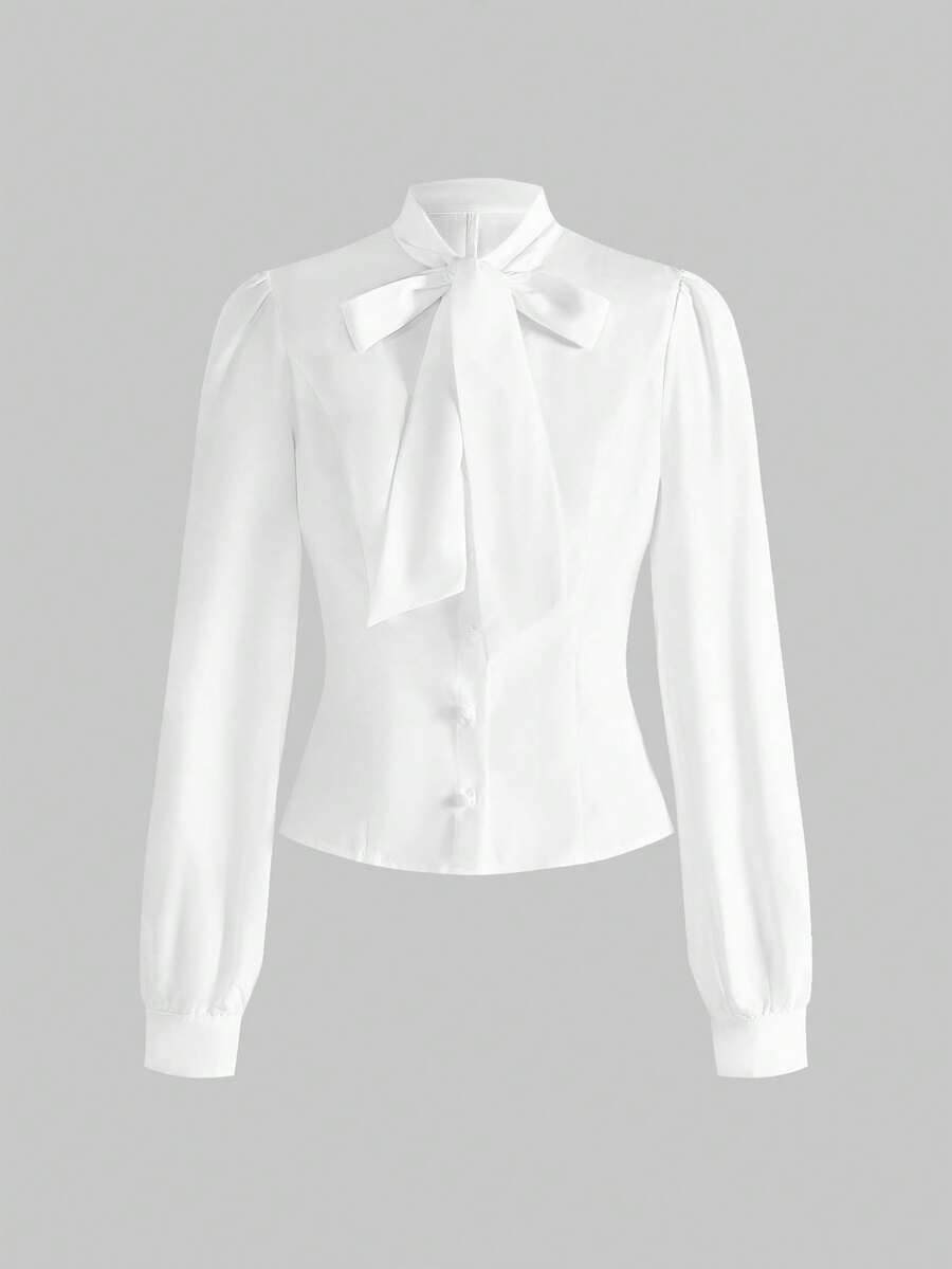 Kawaii Camisa de mujer de unicolor de manga larga con puños con lazo, versátil