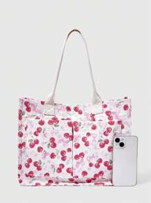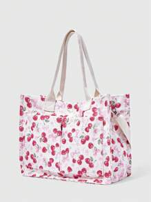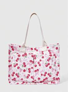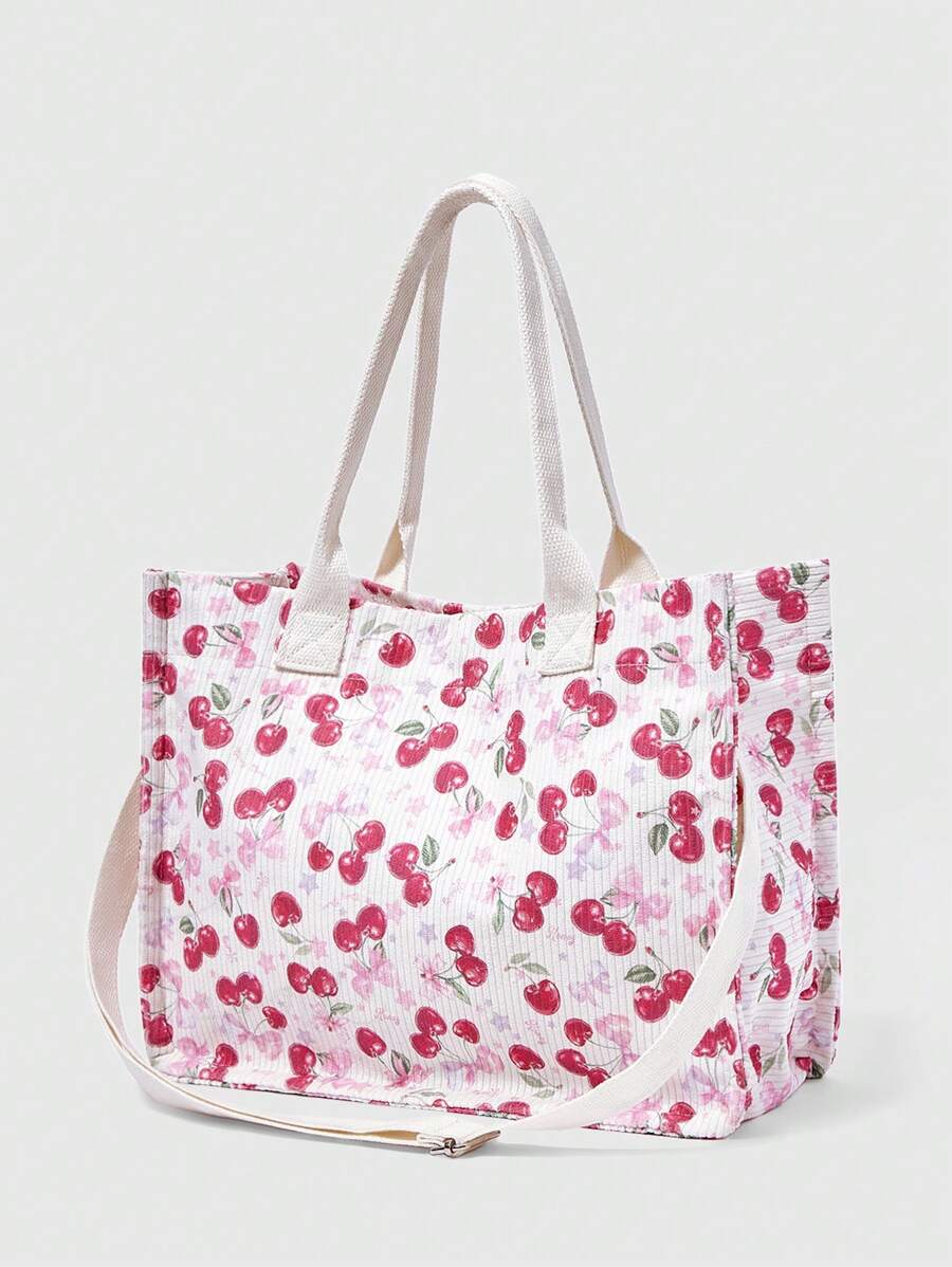 Kawaii Bolso de tela de pana espacioso para mujer - Bolso multiusos con estampado de lazos para llevar en el hombro o cruzado