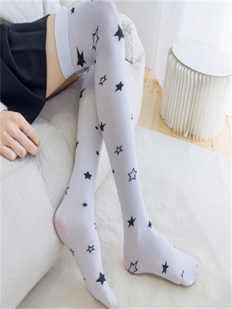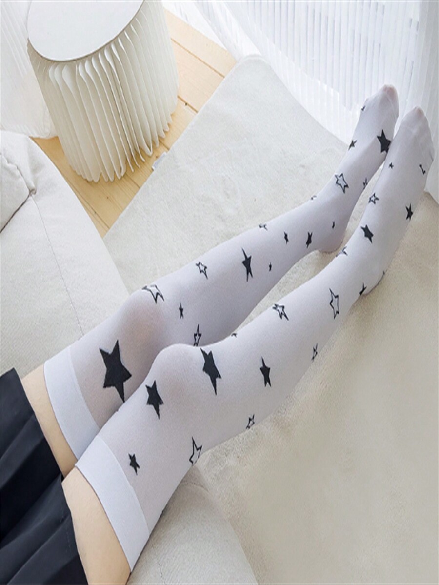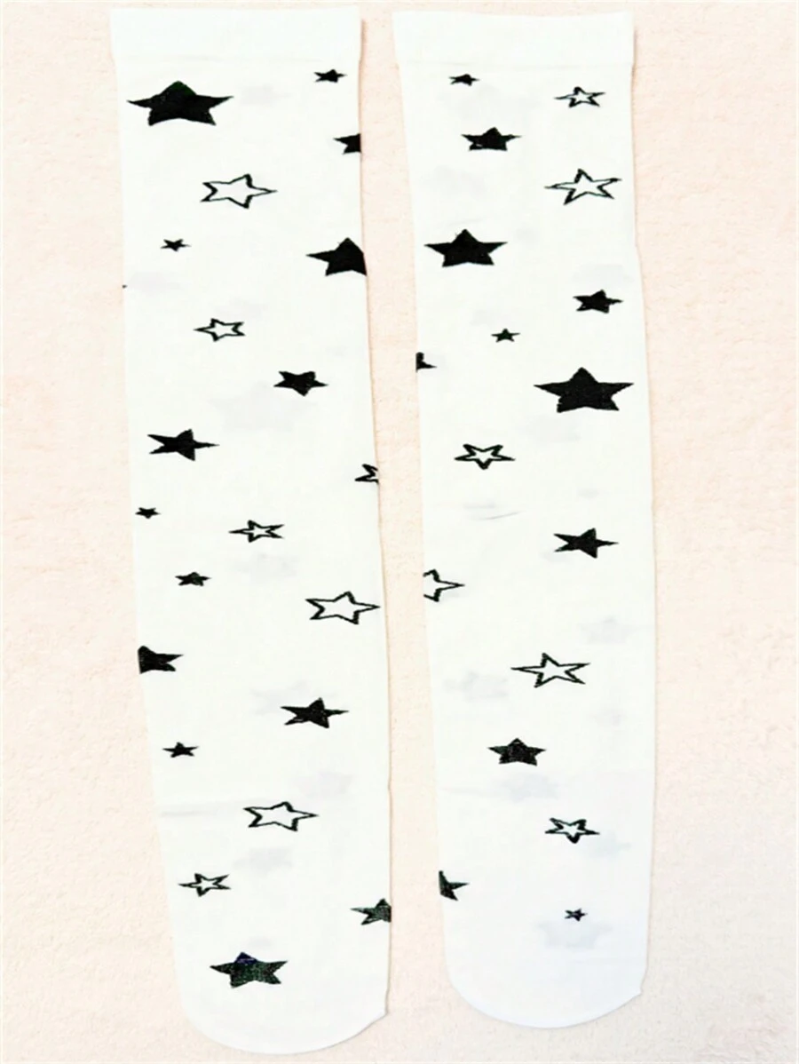 Kawaii Medias Blancas Con Estampado De Estrellas Para Mujer