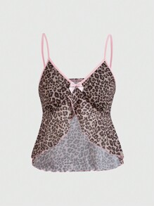 Kawaii Camisola De Malla De Verano De Leopardo Sexy Para Mujer Con Abertura En V Y Detalle De Lazo