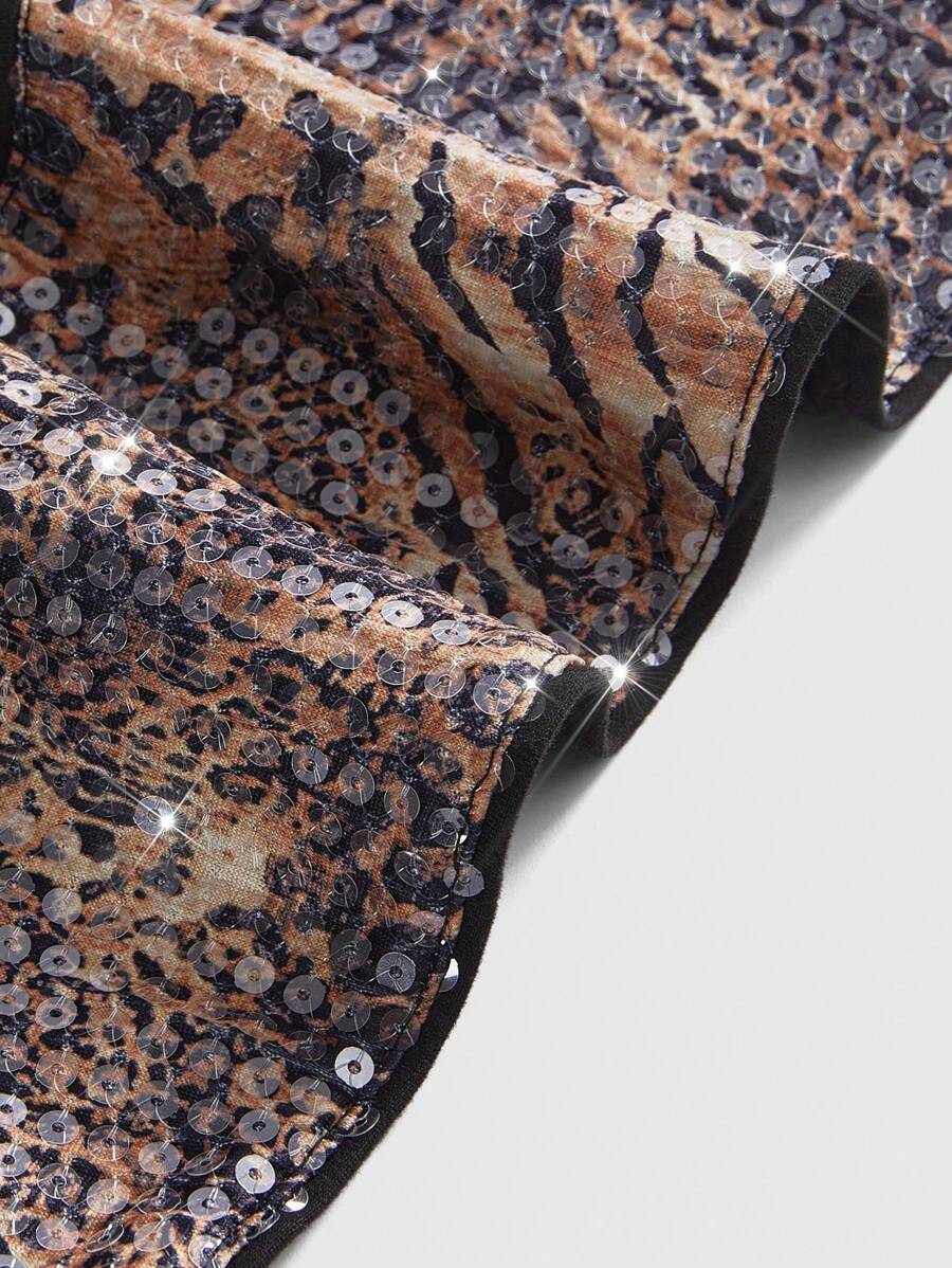 Kawaii Camiseta 2 en 1 con estampado de leopardo, lentejuelas y apliques, estilo minimalista de moda casual para uso diario