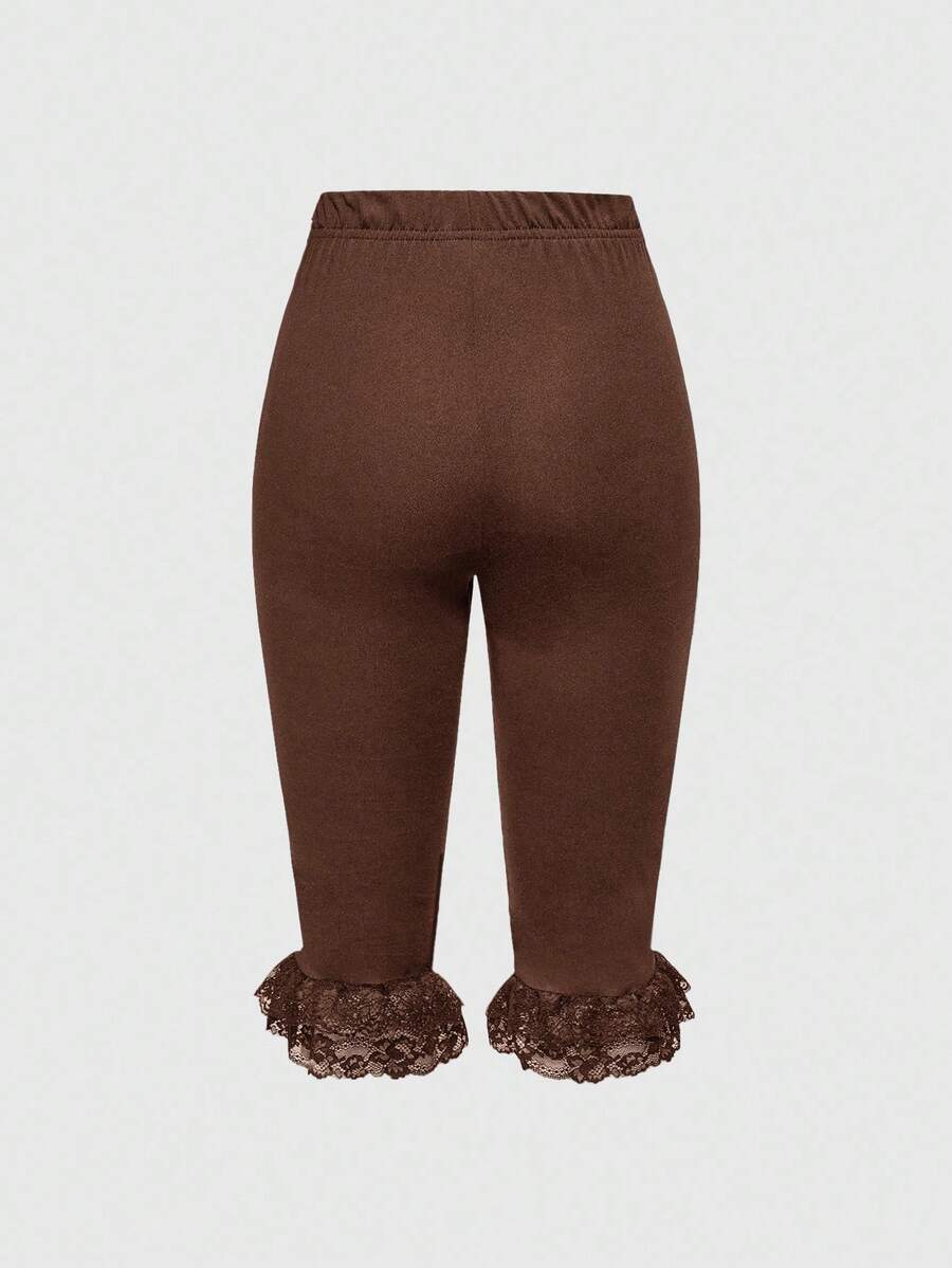 Kawaii Pantalones capri con parches de encaje y cordones, estilo Y2K