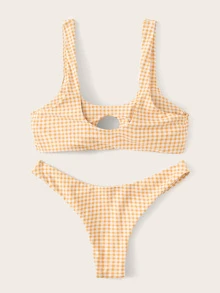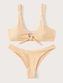 Set de bikini de guingán con nudo delantero