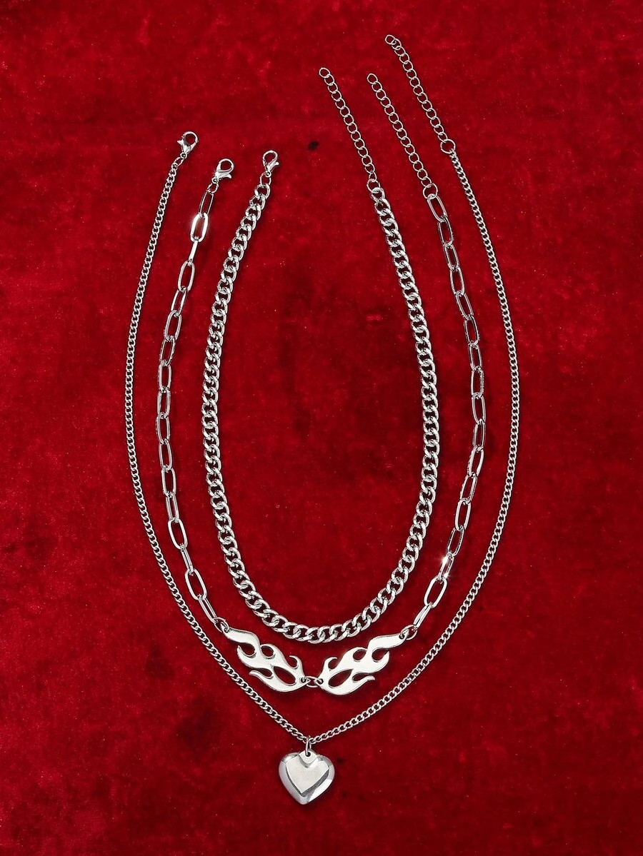 Grunge Punk Collar a capas con corazón & fuego con diseño