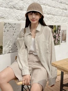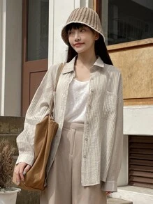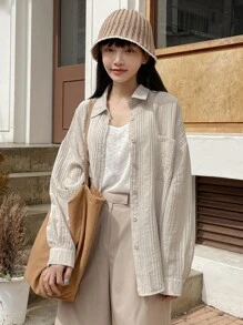 Camisa Con Hombros Caídos Y Bolsillo Parchado
