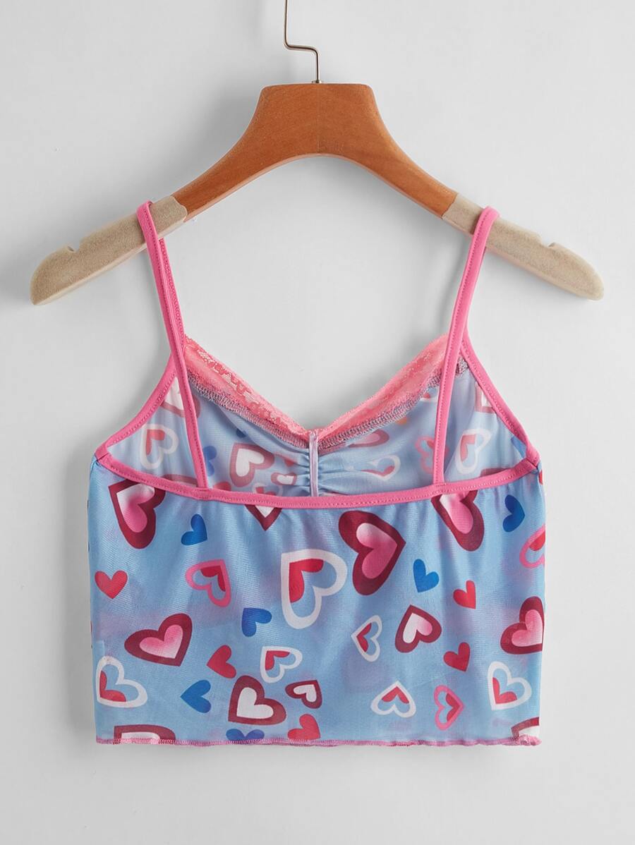 Cami Corto Con Gráfico De Corazón Y Encaje