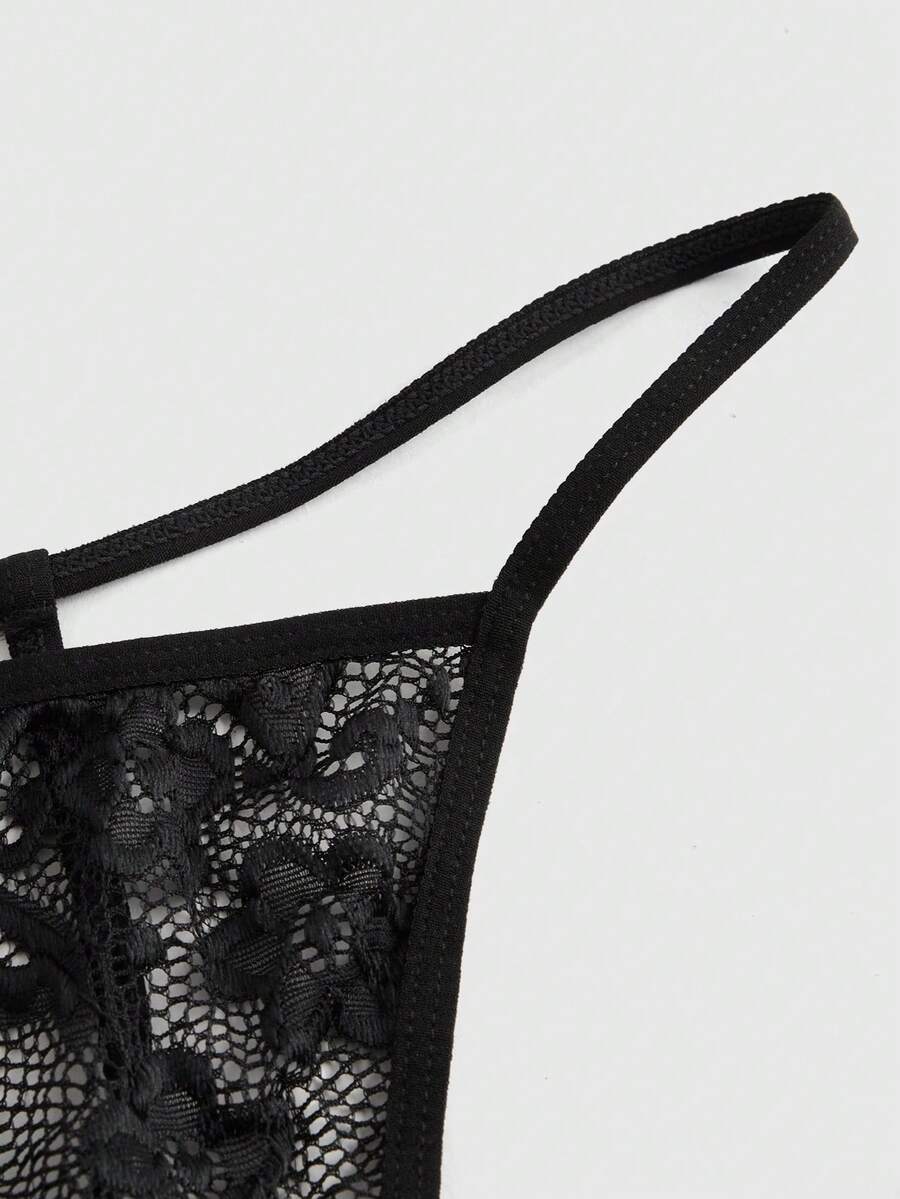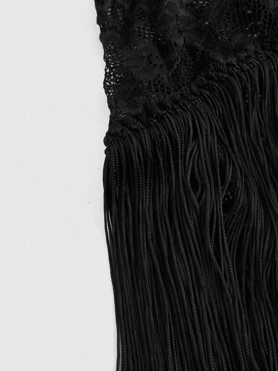 Conjunto de lencería con encaje empalmado y flecos